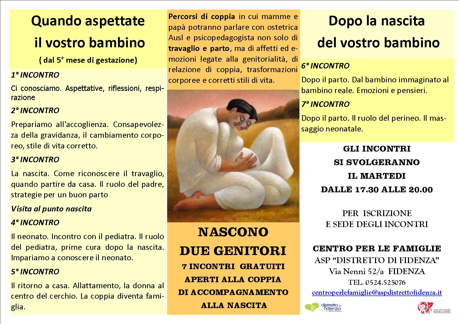 NASCONO DUE GENITORI è un percorso di coppia di 7 incontri, 5 prima del parto e 2 dopo il parto. La prima edizione è stata martedì 13 marzo, per 5 settimane consecutive dalle 17.30 alle 20.00; un regalo che i nuovi genitori fanno a se stessi e al loro bimbo per prepararsi in modo sereno e consapevole ad essere una nuova famiglia.