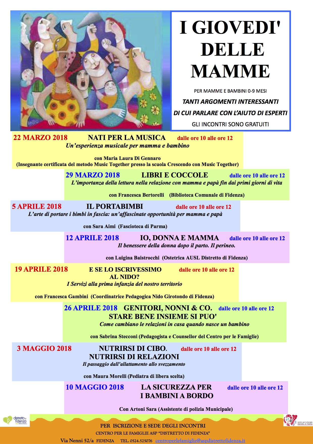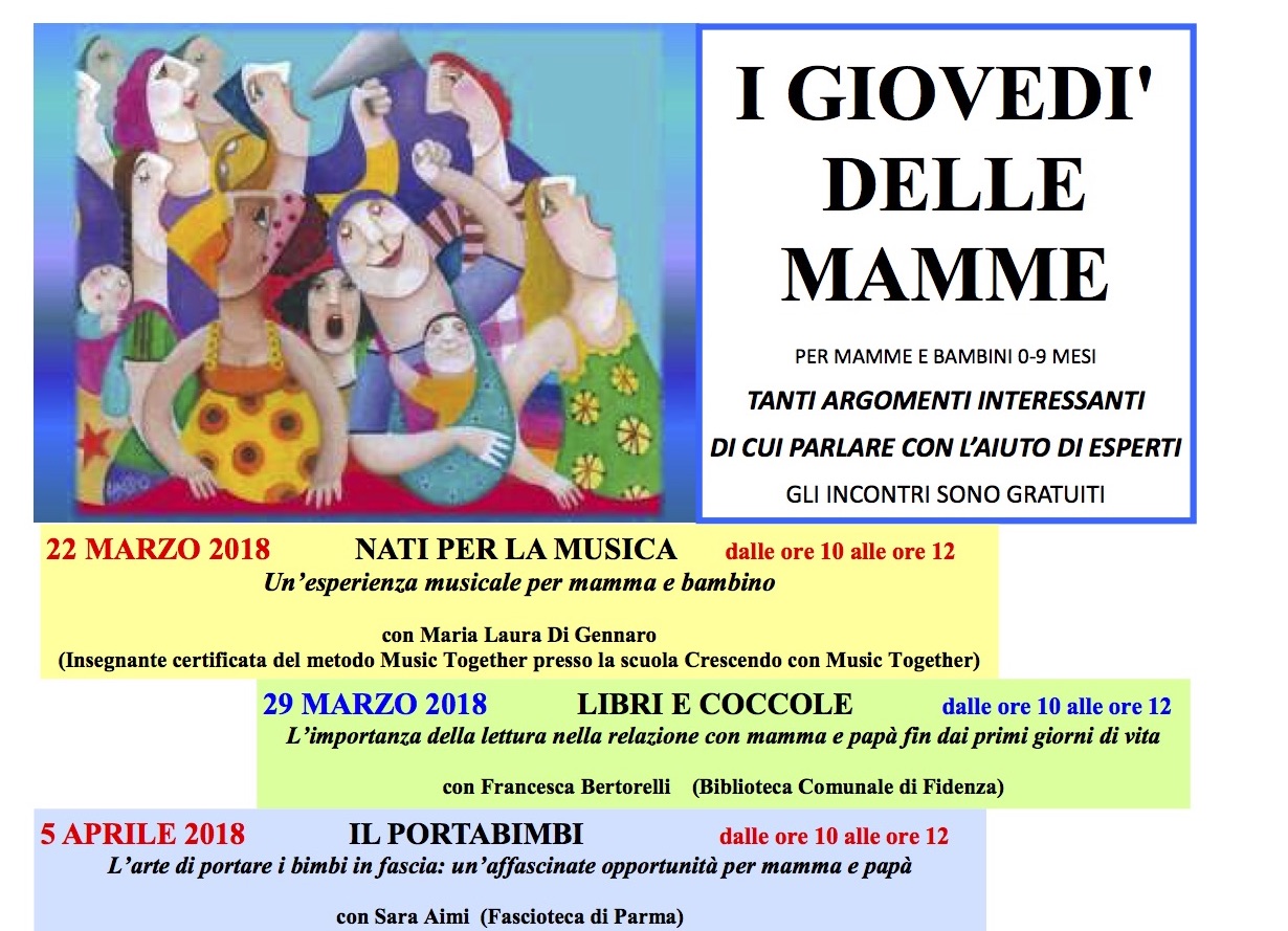 I GIOVEDI’ DELLE MAMME ripartono dal 22 marzo ogni giovedì dalle 10 alle 12; sono per le neomamme, ma anche i papà sono i benvenuti!
