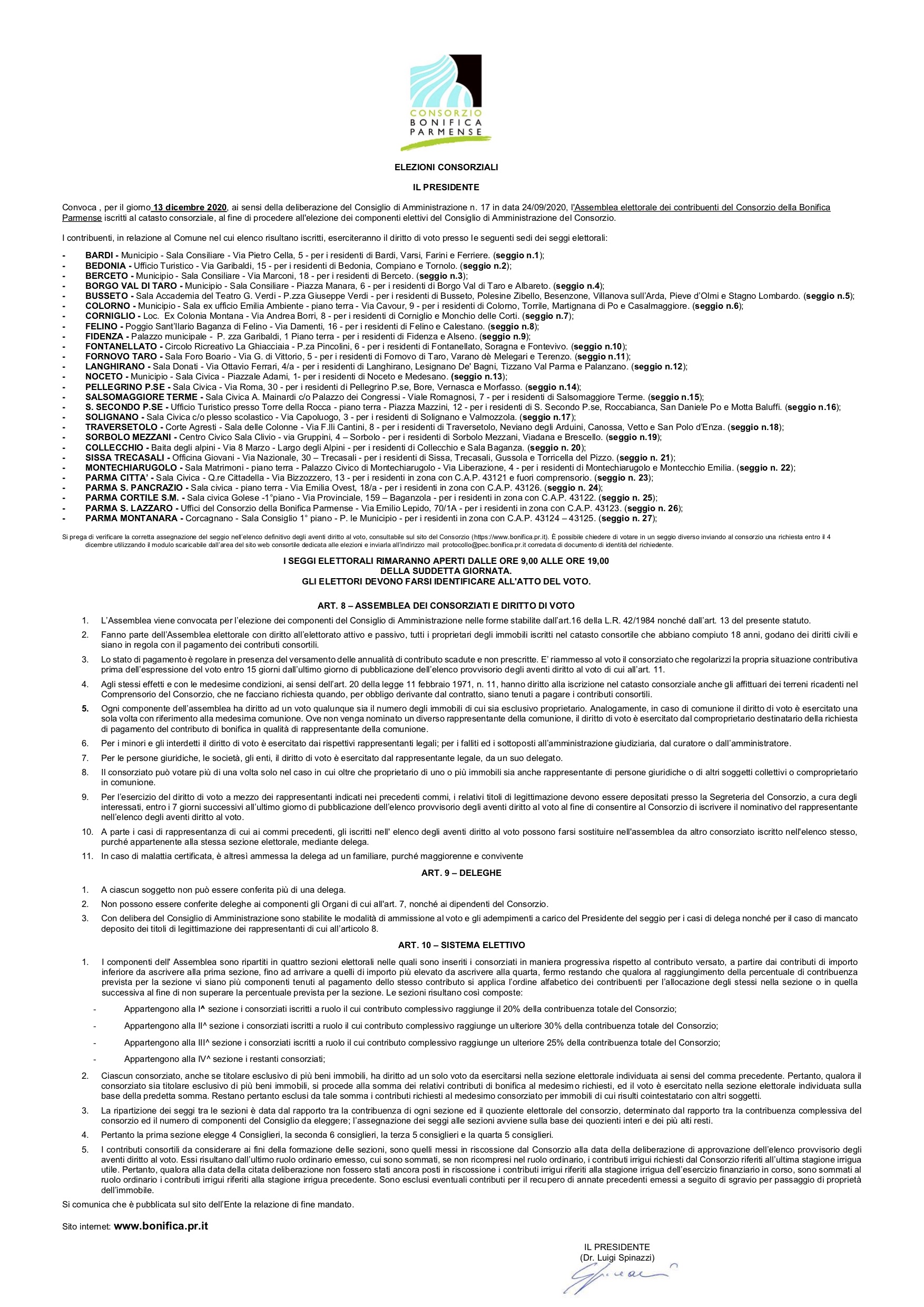 Assemblea elettorale dei contribuenti del Consorzio della Bonifica Parmense di UG 23 Novembre 2020 23 Novembre 2020 20 Clicca sull’immagine sotto per ingrandire.
