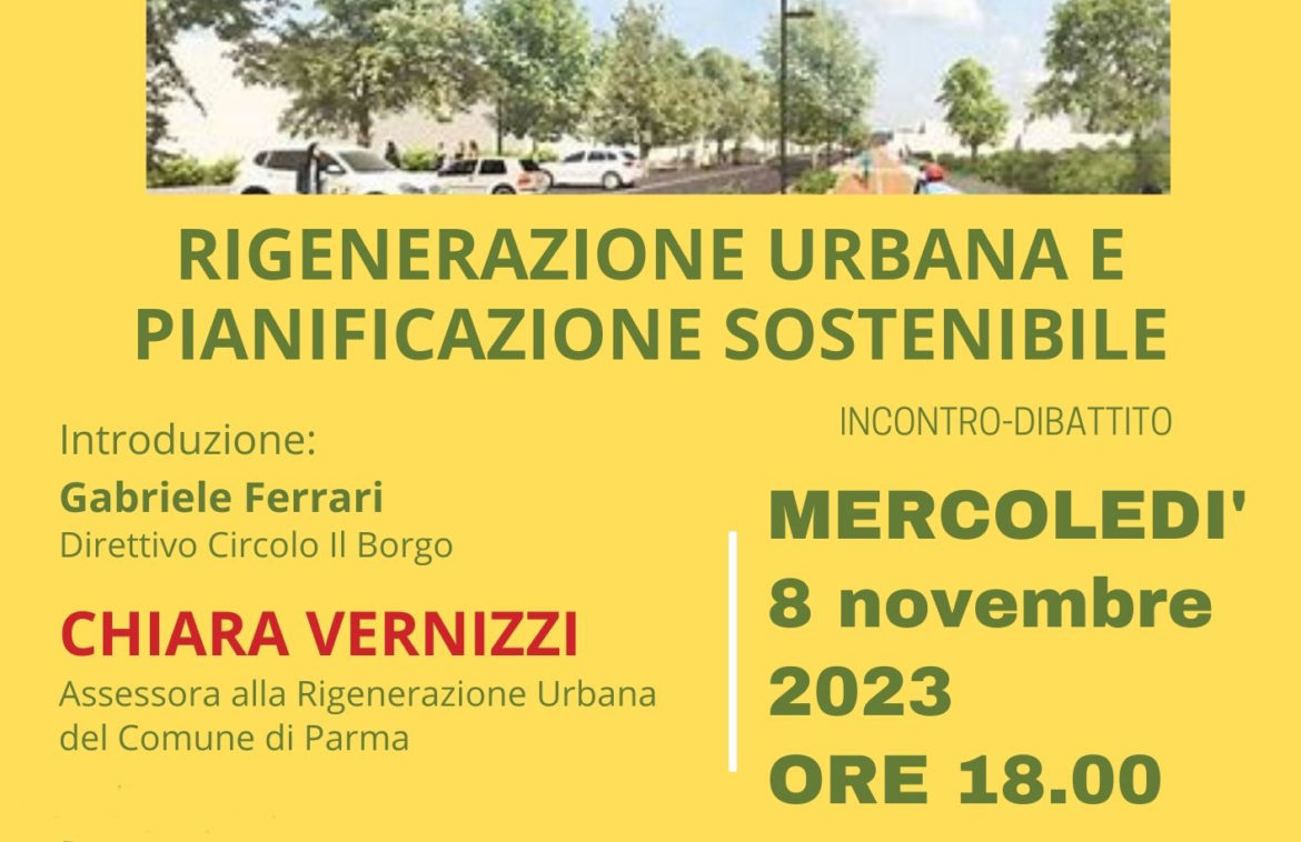 Mercoledì 8 novembre alle ore 18.00 l’Assessora all’Urbanistica del Comune di Parma, Chiara Vernizzi, dialogherà con Riccardo Campanini, Presidente de Il Borgo, sul tema “Rigenerazione urbana e pianificazione sostenibile”, approfondendo in particolare le novità e le prospettive contenute nel PUG (Piano urbanistico generale), il nuovo strumento di pianificazione in corso di approvazione da parte dell’Amministrazione comunale, che determinerà le linee di sviluppo della città per i prossimi anni.