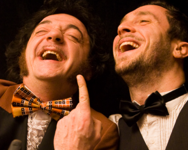 Nell’atmosfera soffusa di un salotto anni Trenta, il loro duo `jazzigano ́ darà vita a un’incandescente festa sonora, arricchita da improbabili strumenti a sorpresa e da una “loop station” che sintetizza ed amplifica il divertimento, tra musica, brindisi e aneddoti. Un continuo crescendo di humor ed eventi surreali, che esploderà in una miriade di strumenti musicali. Un duo irrefrenabile per due ore di virtuosismo e comicità.