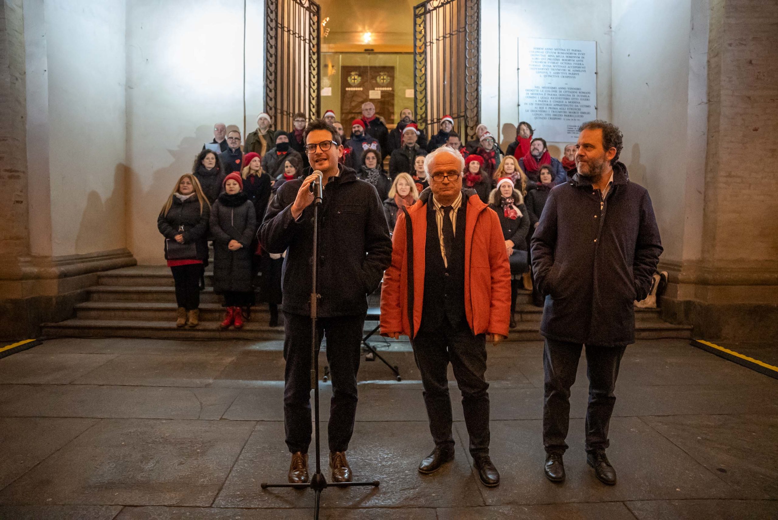 Auguri in Coro è il titolo dell’esibizione che Coro del Teatro Regio di Parma ha riservato alla città sotto i Portici del Grano. Un’iniziativa gratuita che ha riscosso l’interesse di tanti e che è stata contraddistinta dalla partecipazione del Sindaco, Michele Guerra, del Vicesindaco, con delega alla Cultura, Lorenzo Lavagetto, di tanti Assessori e Consiglieri.
