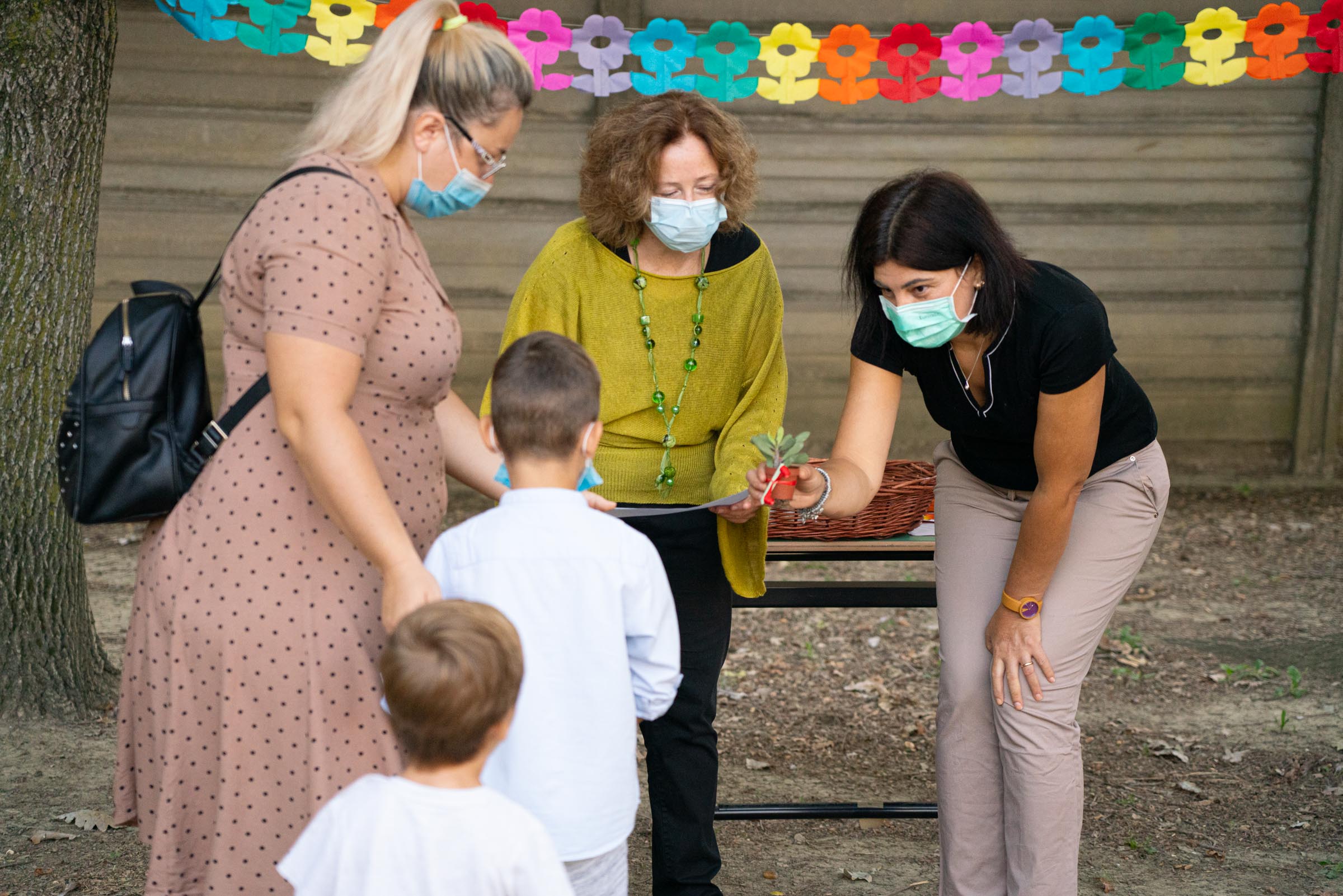 Bambini e genitori delle cinque prime elementari sono stati accolti dagli insegnanti negli spazi verdi annessi alla scuola. E’ stato un momento emozionante in cui le maestre hanno donato ad ogni bambino una piccola piantina in modo che se ne prendano cura, così come la scuola si prende cura di loro.