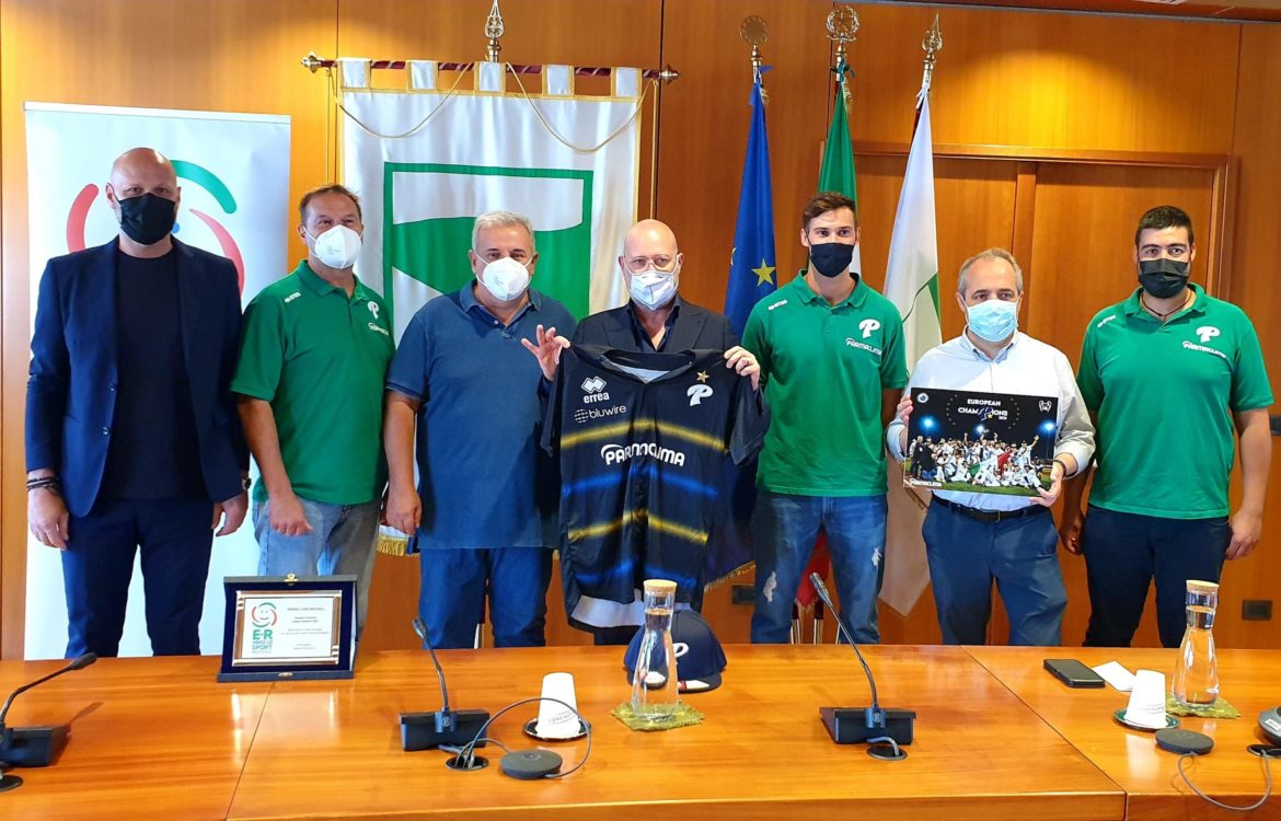 Oggi, a ritirare la targa in Regione, a Bologna, consegnata da Bonaccini insieme al capo della segreteria politica della presidenza, Giammaria Manghi, il presidente della società parmigiana, Luca Meli, il General Manager, Massimo Fochi, l’allenatore Gianguido Poma, il capitano della squadra, Sebastiano Poma, e Alex Sambucci, il miglior giocatore del torneo.