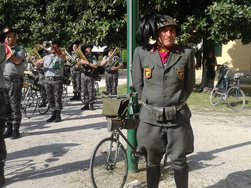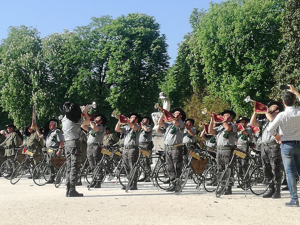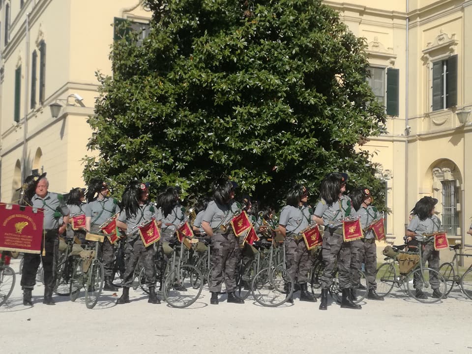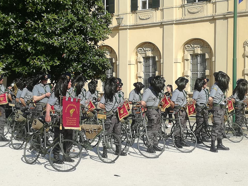 Davanti a Palazzo Ducale l’avvio della manifestazione storico sportiva per il 120esimo Anniversario del Corpo dei Bersaglieri Ciclisti.