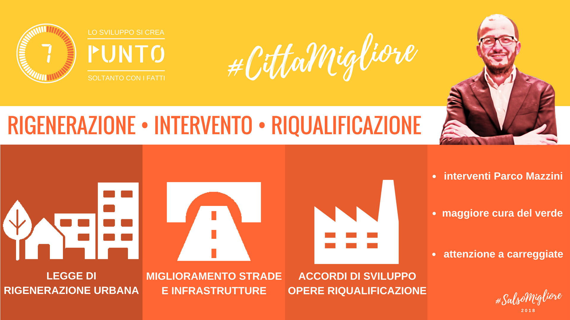 Il settimo, fondamentale punto del programma del candidato Filippo Fritelli per #SalsoMigliore2018 è un Piano Straordinario di Rigenerazione, Manutenzione e Abbellimento Urbano e del Territorio ed è stato presentato, in maniera molto diretta, dal presidente della Regione Emilia Romagna Stefano Bonaccini che ha confermato la disponibilità immediata ad attivare tutte le leve strategiche d’investimento possibili per la città a fronte di una programmazione mirata in grado di incrementare la capacità attrattiva di Salsomaggiore.