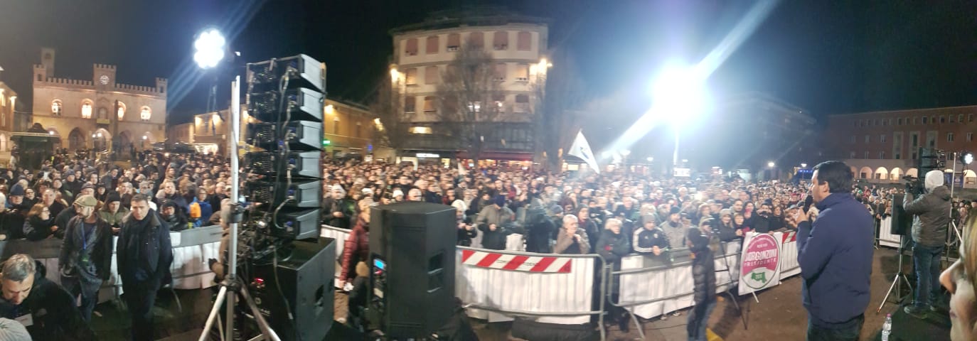 In serata Matteo Salvini ha tenuto un comizio in piazza a Fidenza.