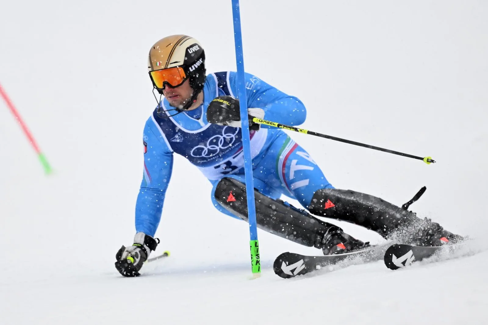 Saccardi parte da outsider. Lo aveva dichiarato lui stesso dopo la combinata, dove aveva ottenuto un ottimo risultato su questa pista. Senza nulla da perdere, sceglie un approccio aggressivo e determinato, soprattutto nella prima manche, che chiude con un eccellente decimo posto in 58”37.