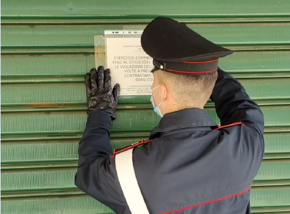 Nel corso del servizio perlustrativo, i militari transitando davanti ad un bar si sono accorti che nei tavolini vi erano 4 persone che consumavano mentre all’interno vi era un avventore intento a bere. Il 61enne legale rappresentate è stato sanzionato con 40 euro e la chiusura provvisoria del locale fino al 7 di marzo. Gli avventori sono stati tutti sanzionati.