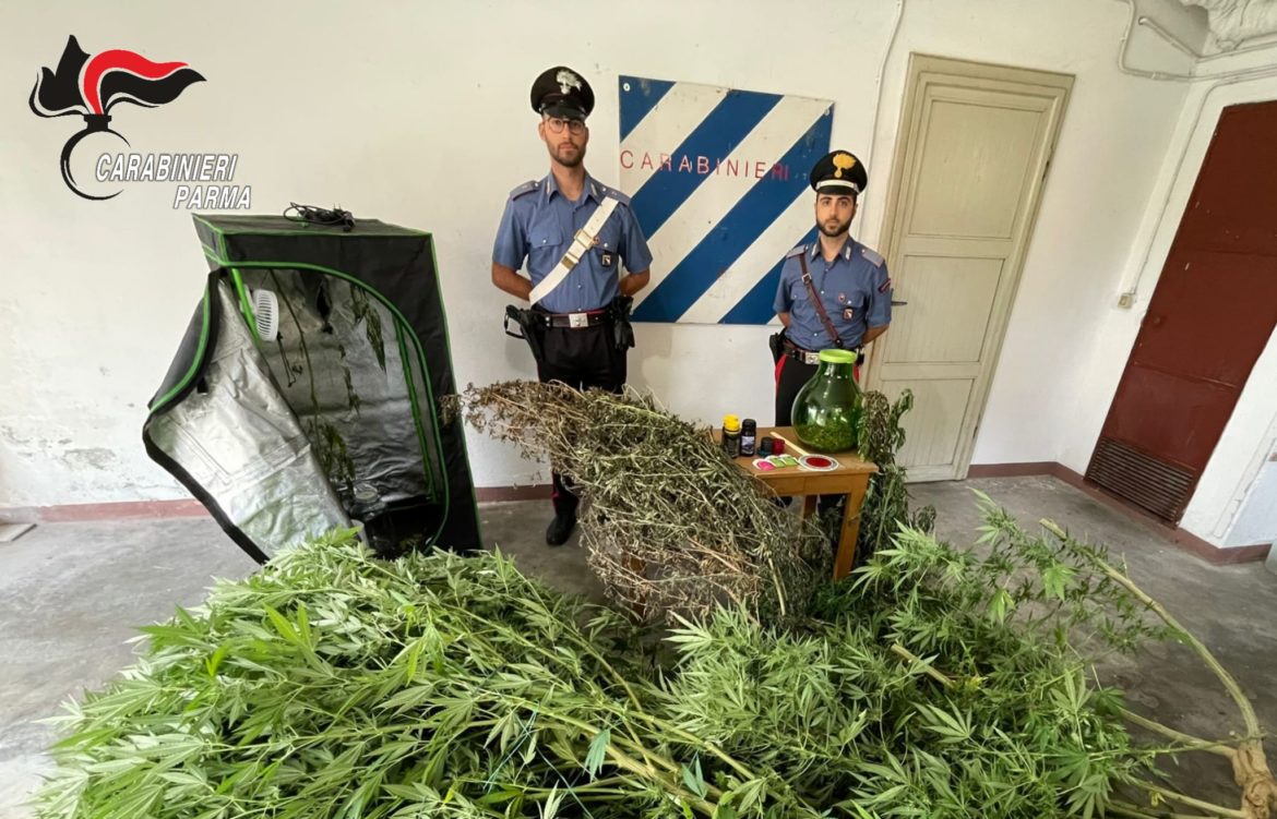 Recuperate le piante e avviati gli accertamenti in laboratorio per verificare la quantità di principio attivo, i militari hanno sottoposto a sequestro il prodotto, le piante e tutto il materiale utile alla produzione, e denunciato a piede libero il trentenne, fino a quel giorno incensurato, alla Procura della Repubblica di Parma perché ritenuto responsabile di “produzione e possesso di sostanze stupefacenti”.