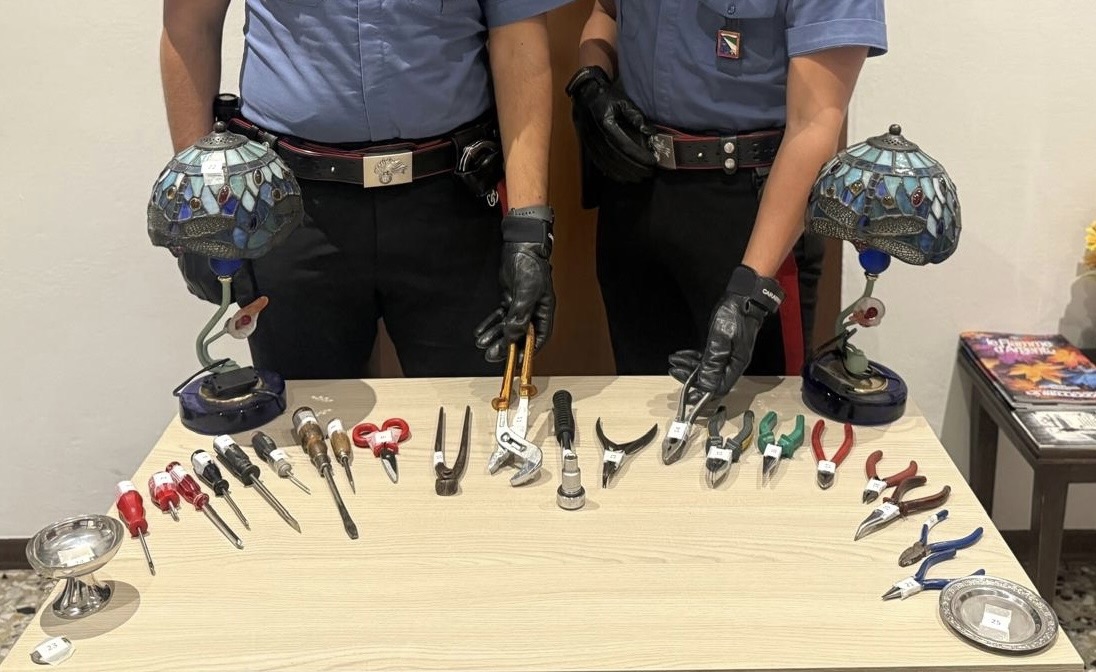 Alla luce di questi elementi, i Carabinieri, supportati dalle altre pattuglie sopraggiunte, hanno ispezionato l’auto, rinvenendo nel bagagliaio un kit completo da scasso, composto da 8 cacciaviti, una tenaglia, una chiave a bussola e 10 pinze di varie misure, tutti oggetti sequestrati in quanto ritenuti idonei a commettere reati. Sono stati inoltre trovati alcuni oggetti di arredamento domestico, di cui nessuno degli occupanti ha saputo giustificare la proprietà, anch’essi sequestrati in quanto sospettati di costituire refurtiva provento di altri furti, sui quali sono in corso ulteriori indagini da parte dei Carabinieri di Busseto.