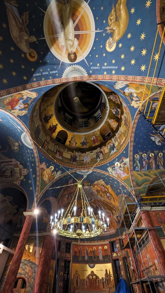 I riti ortodossi stanno sempre un fascino particolare – perché la chiesa Greco Cattolica obbedisce al Vescovo di Roma ma mantiene il rito bizantino – Il Te deum di Padre Igor nella chiesa del seminario assume un fascino particolare in una comunione di popoli e di fedi che da il valore di una comunità che va oltre le appartenenze e le nazionalità. L’allarme aereo non distrae, se può aggiunge suggestione.