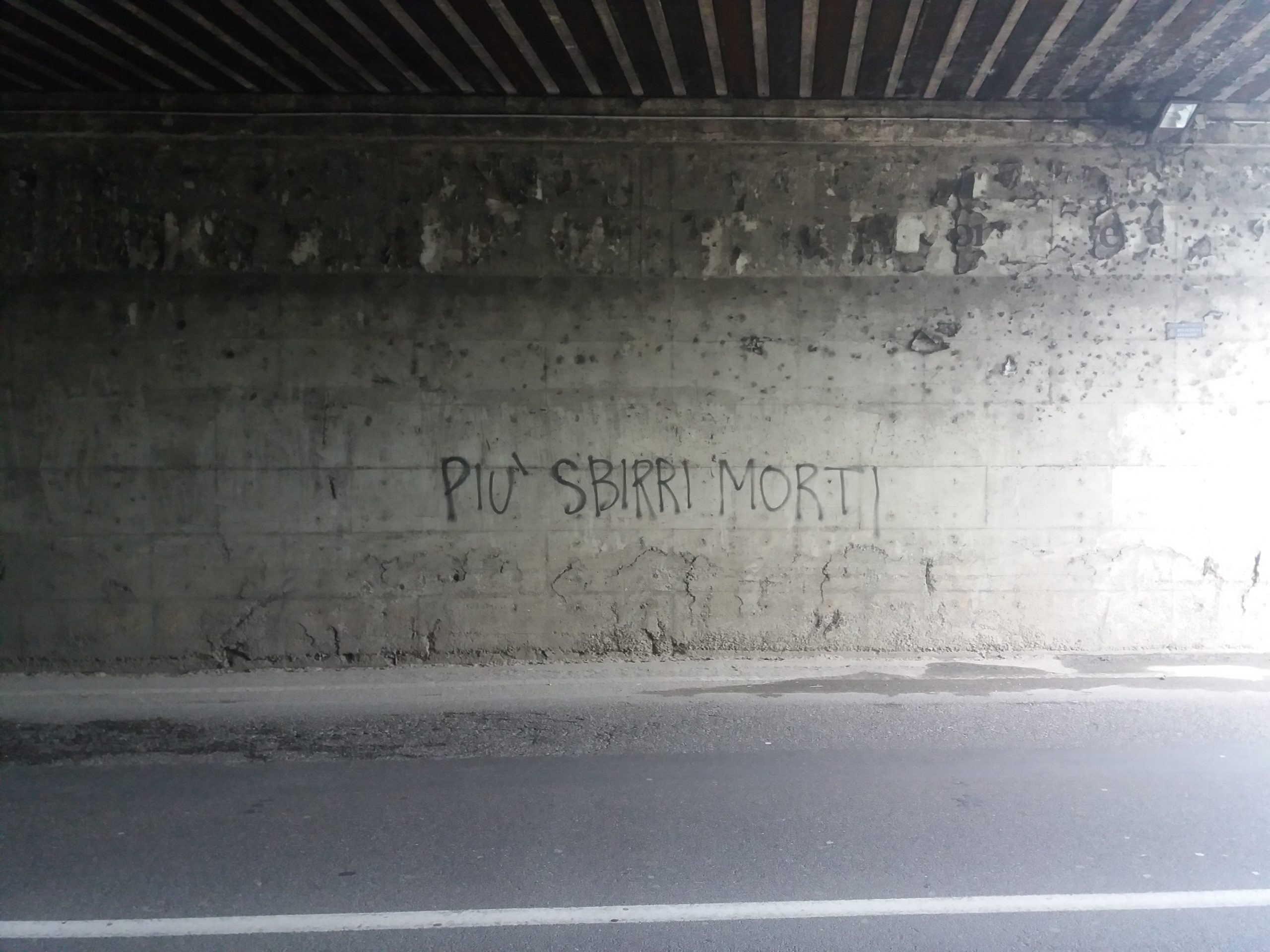 In questi giorni sono comparse due scritte “gemelle” sui muri di Parma: una ha imbrattato la sede del Partito Comunista di Parma con la frase “Più stalinisti morti”, l’altra il sottopasso tra via del Mercati e via Savani con la dicitura “Più sbirri morti”.