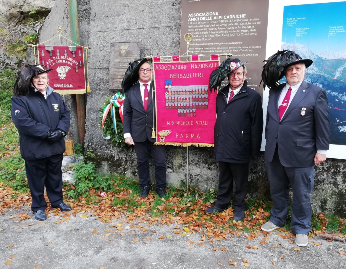 Nel quadro delle celebrazioni per il Centenario del Milite Ignoto i Bersaglieri di Parma e di Reggio Emilia, dopo aver partecipato alle cerimonie della staffetta Cremisi della Pace e delle portatrici carniche al Sacrario Militare di Timau, sono saliti al Passo di Monte Croce Carnico, alle pendici del Monte Pal Piccolo.