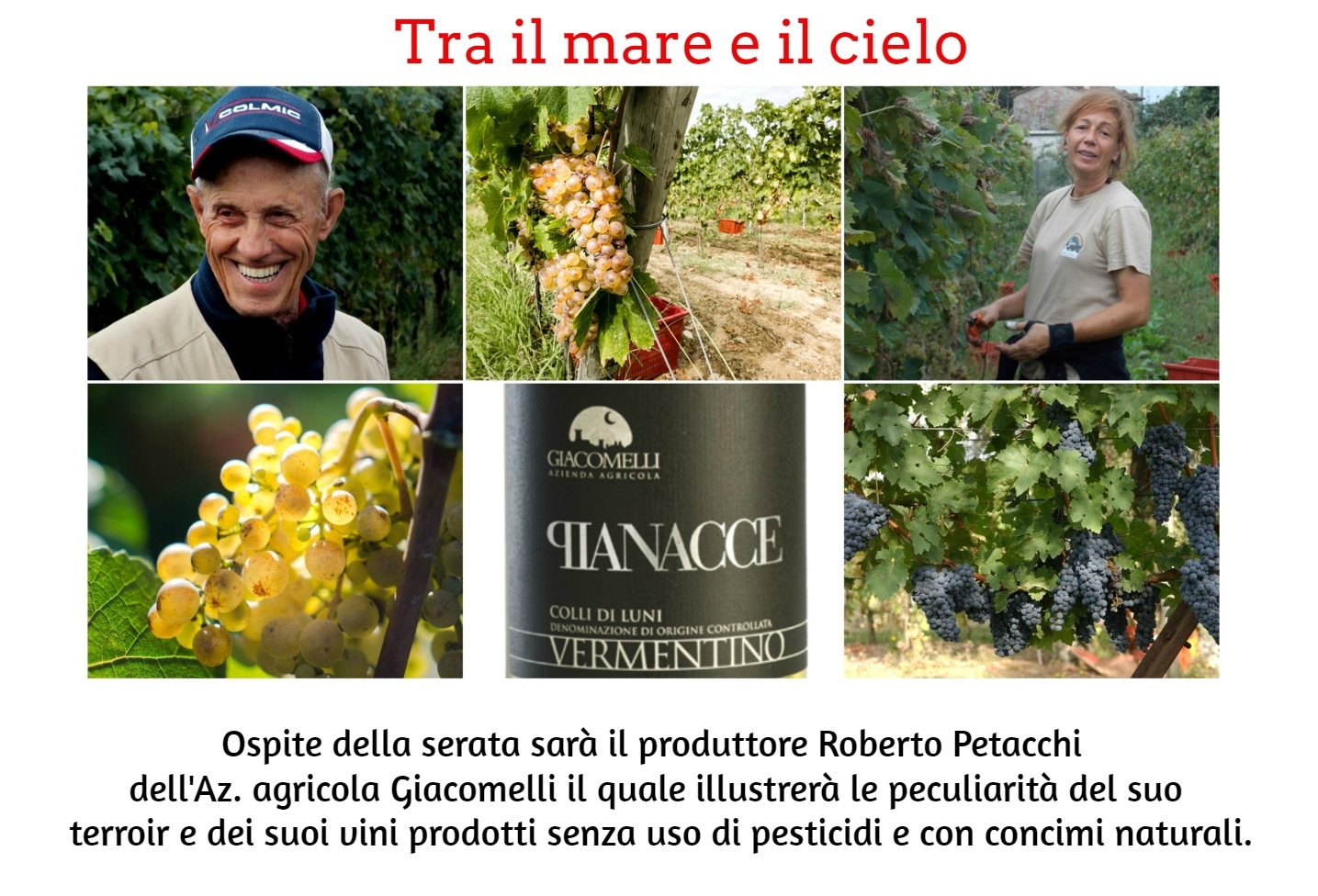 Si terra’ mercoledi 16 maggio alle ore 20,00 il quinto degli appuntamenti della rassegna “Vignaioli e territori s’incontrano a tavola” il titolo di questo penultimo evento e’ “Tra il mare e il Cielo” – protagonisti i grandi vini liguri dell’Az. Agricola Giacomelli che saranno ospiti della Wine and Food Academy di Parma nei locali di Arte e Gusto in via Emilia Est 87, Parma.