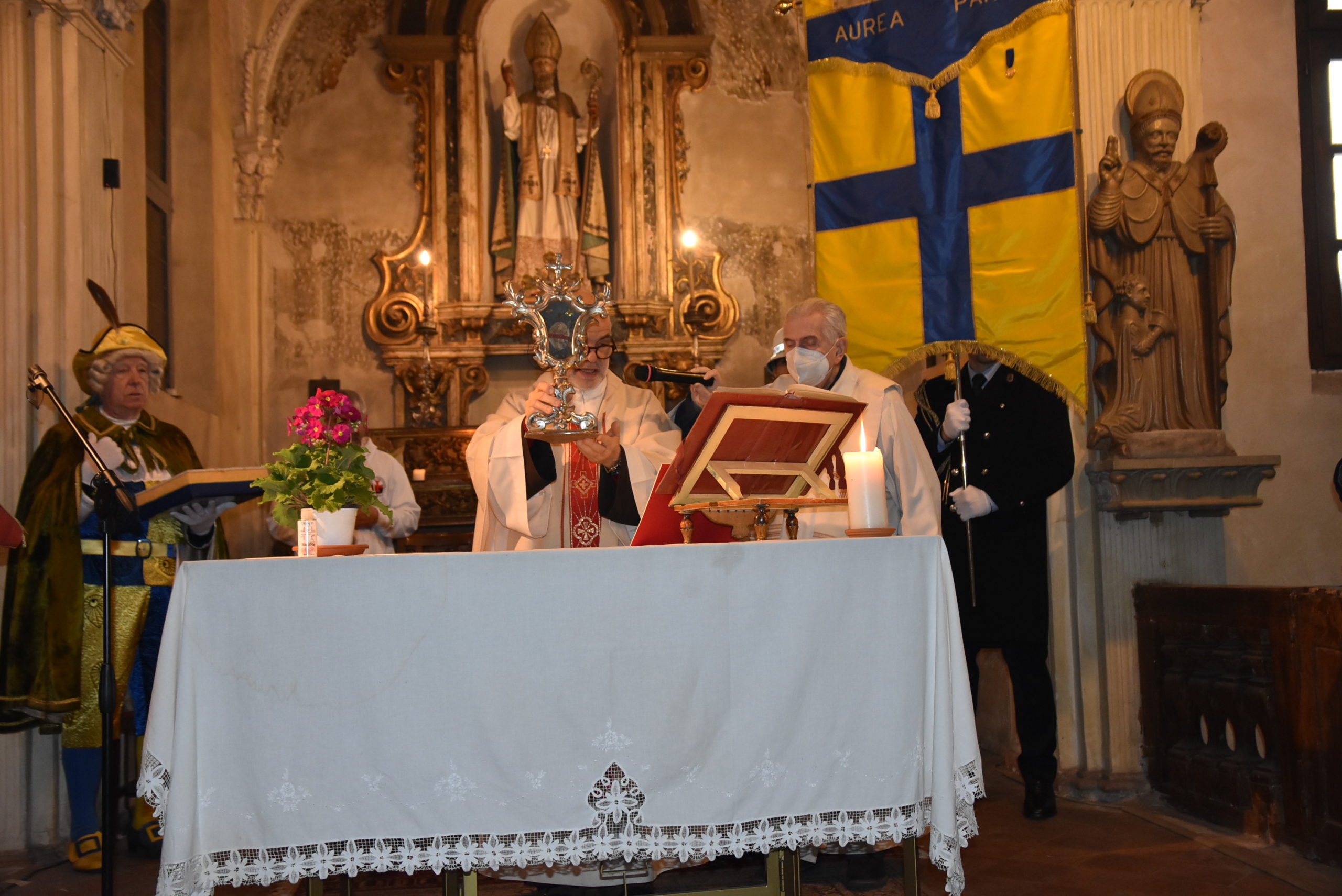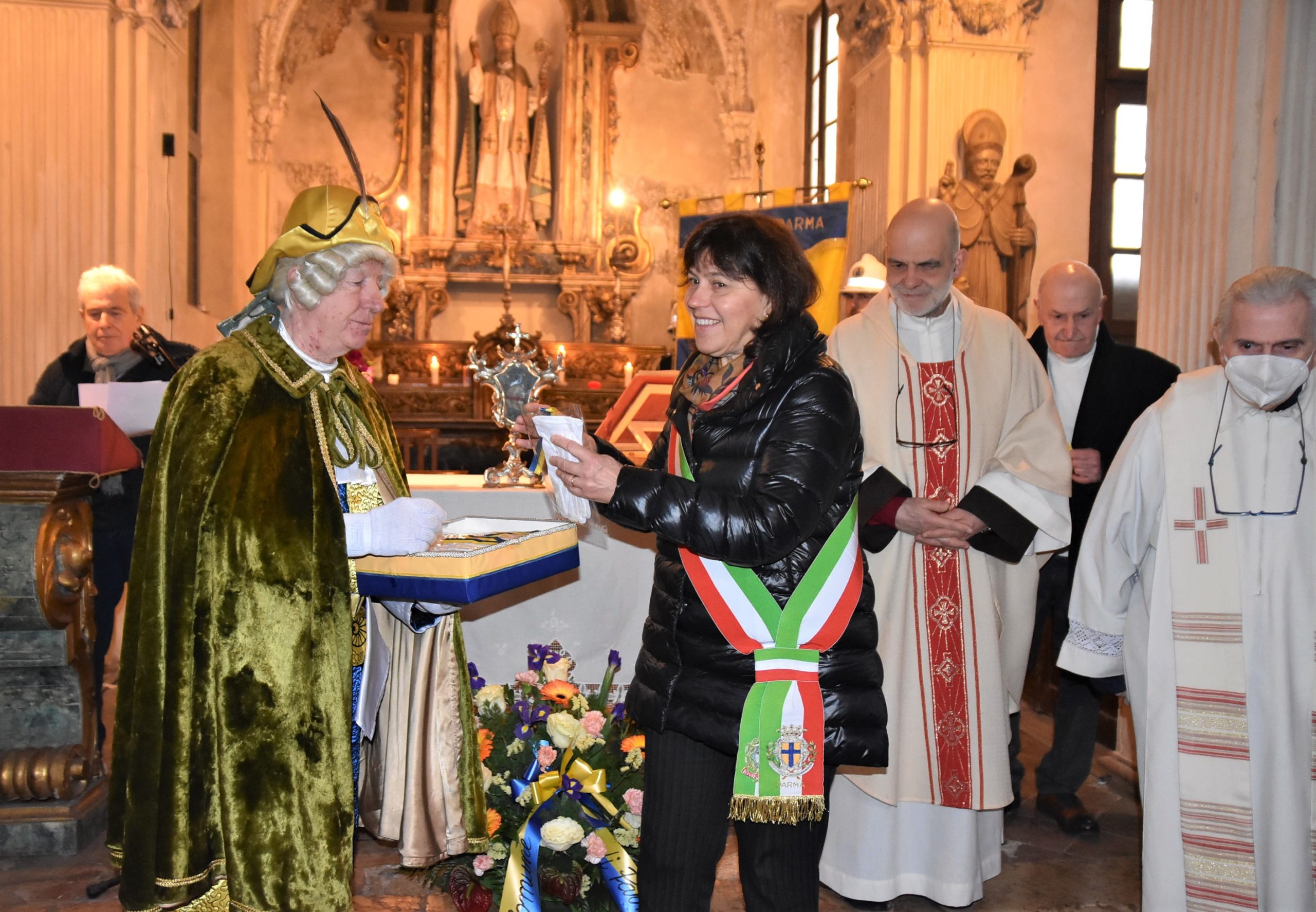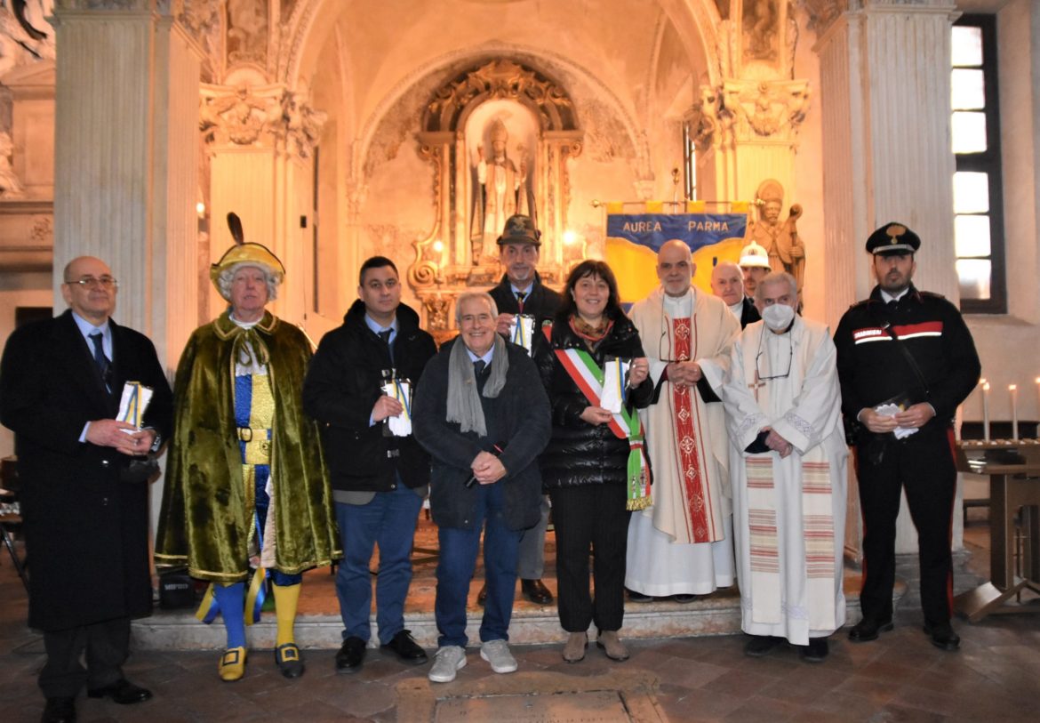 Dopo gli anni di pandemia la celebrazione, quest’anno, è rientrata nel prezioso Oratorio dei Portici di via D’Azeglio preferito, spesso, anche dalla Duchessa Maria Luigia per i suoi ambienti incantevoli, ritrovando tutta la suggestione della tradizione con la reliquia del Santo, custodita in un’elaborata teca di argento e con i sigilli proprio della Duchessa, che la fece arrivare a Parma, e che ha accompagnato la cerimonia al centro dell’altare.
