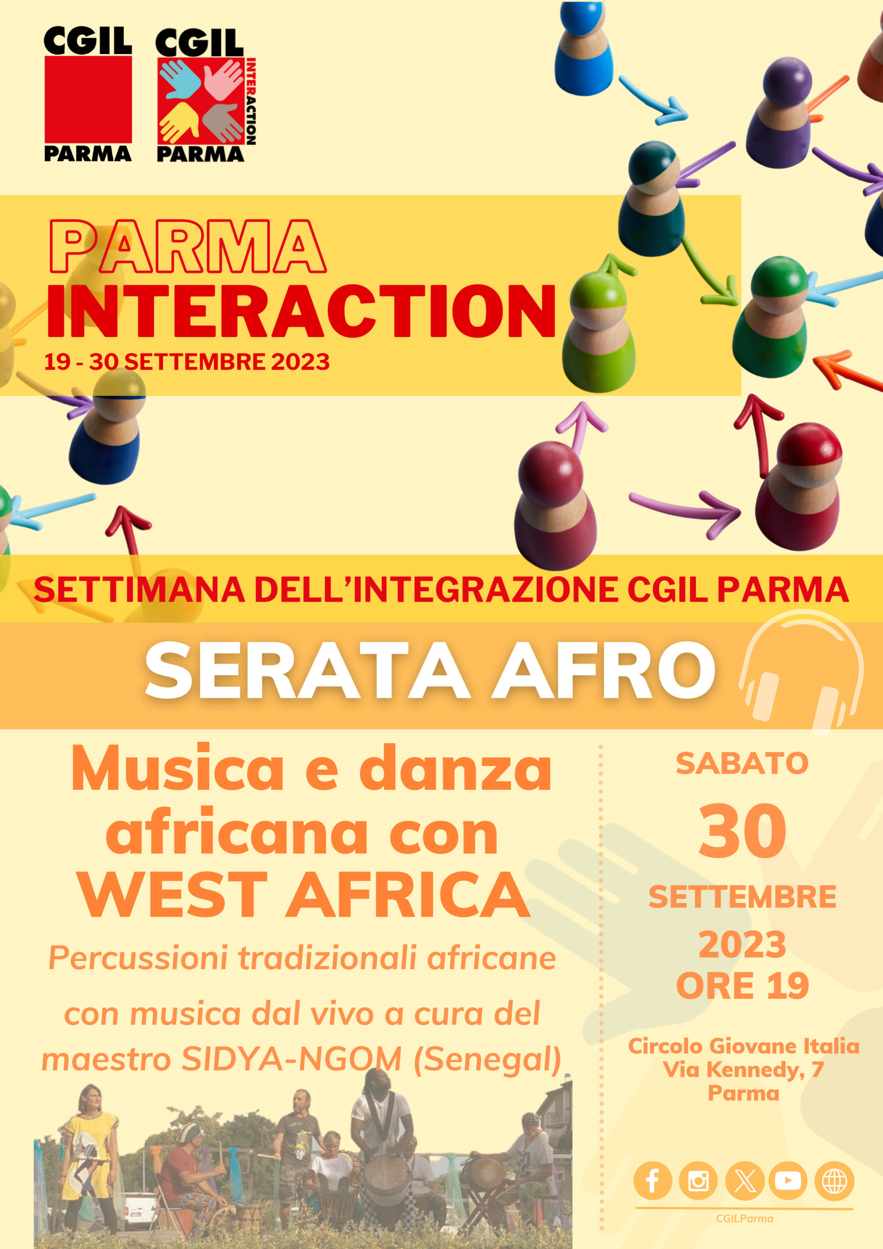 Si conclude sabato 30 settembre, con un momento di spensieratezza e divertimento all’insegna della musica e della danza africana di West Africa, “PARMA INTERACTION”, la Settimana dell’integrazione 2023 organizzata da CGIL Parma e dal suo Dipartimento Migranti per promuovere occasioni di dialogo e reciproca conoscenza con le comunità straniere del territorio.