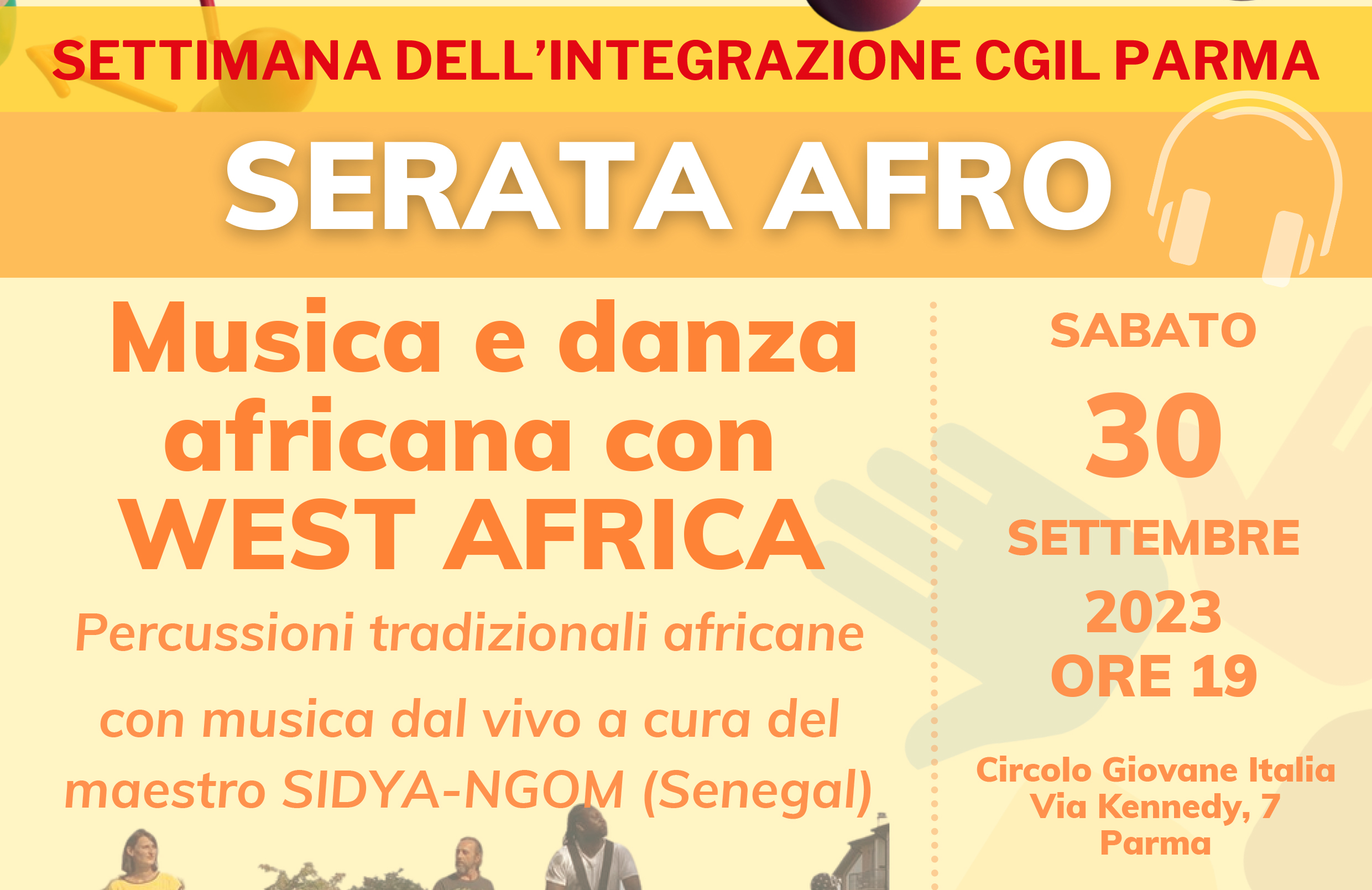 L’appuntamento, aperto a tutta la cittadinanza, è al Circolo Giovane Italia, in via Kennedy, 7 a Parma, con le percussioni tradizionali africane e la musica dal vivo a cura del maestro senegalese Sidya-Ngom.