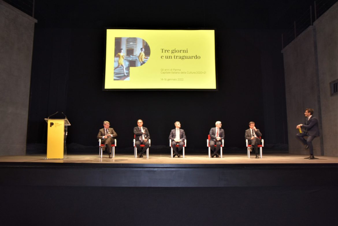 Parma Capitale Italiana della Cultura è entrata in porto dopo aver navigato per due anni in acque imprevedibili, spinta dallo straordinario impegno di ogni singola istituzione, di ogni associazione, delle imprese e dei cittadini che hanno preso parte al progetto. Parma Capitale Italiana della Cultura non ha mai perso la rotta e proseguirà ancora in un nuovo viaggio carico di consapevolezza, un viaggio condiviso che batterà ancora il tempo. Un Teatro Regio gremito (per quello che le misure di prevenzione hanno potuto consentire) ha visto con la conduzione di Alessio Viola giornalista SKY TG24 aprire i saluti istituzionali a questo grande progetto daparte dei promotori e dei sindaci che prendono ora il testimone per gli anni a venire.