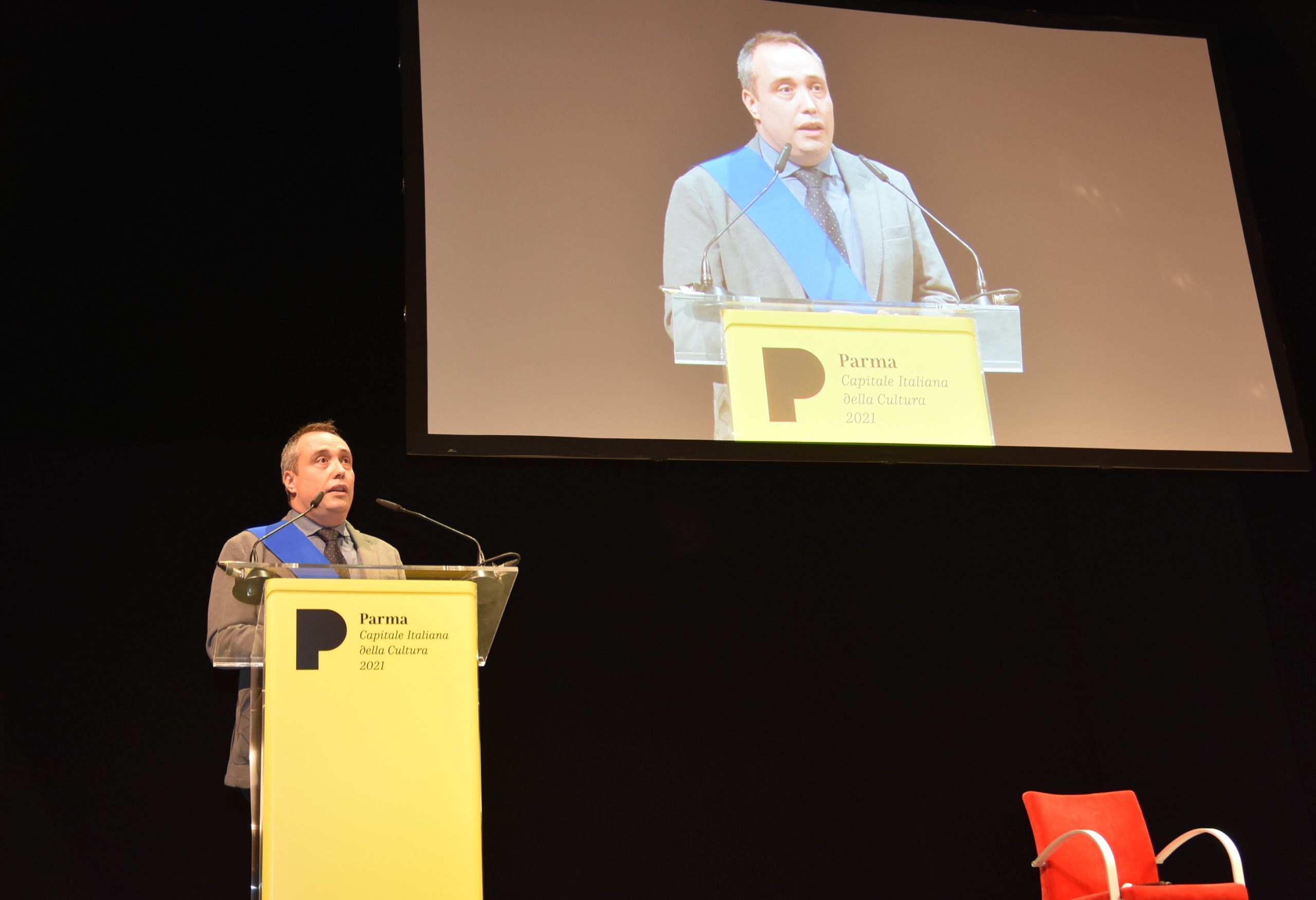 Il Sindaco Federico Pizzarotti ha letto il messaggio del Ministro alla Cultura Dario Franceschini “Parma 2020-21 è la dimostrazione tangibile che la cultura vince su ogni cosa. La dura prova della pandemia non ha impedito a Parma di realizzare un intenso programma di attività grazie al quale la città è stata protagonista della ripartenza culturale del Paese.”