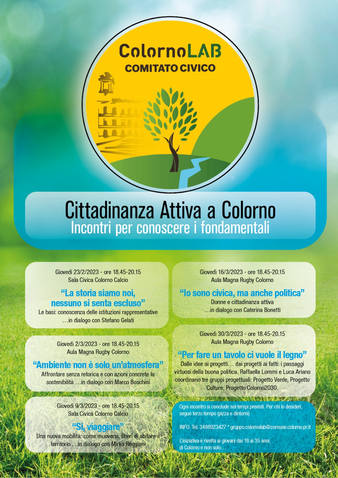 ColornoLAB, Comitato Civico, promuove una serie di incontri rivolti ai giovani tra i 18 e i 35 anni (aperti eccezionalmente anche ad eventuali interessati over quota), con l’obiettivo di fornire strumenti semplici ed efficaci per interpretare “i fondamentali” della cittadinanza attiva.