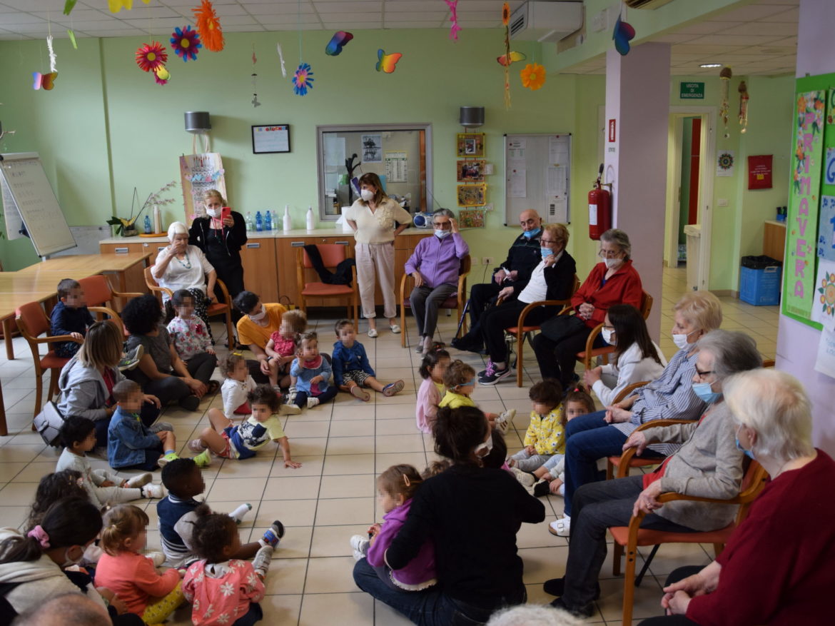 Momenti fatti di sorrisi, carezze e parole, guidati dalle maestre, dalle operatrici del Centro diurno e, nella mattinata di giovedì, dalla sindaca Maristella Galli, che si è intrattenuta chiacchierando con gli anziani e piccoli ospiti, perfettamente a proprio agio, nonostante la situazione insolita.