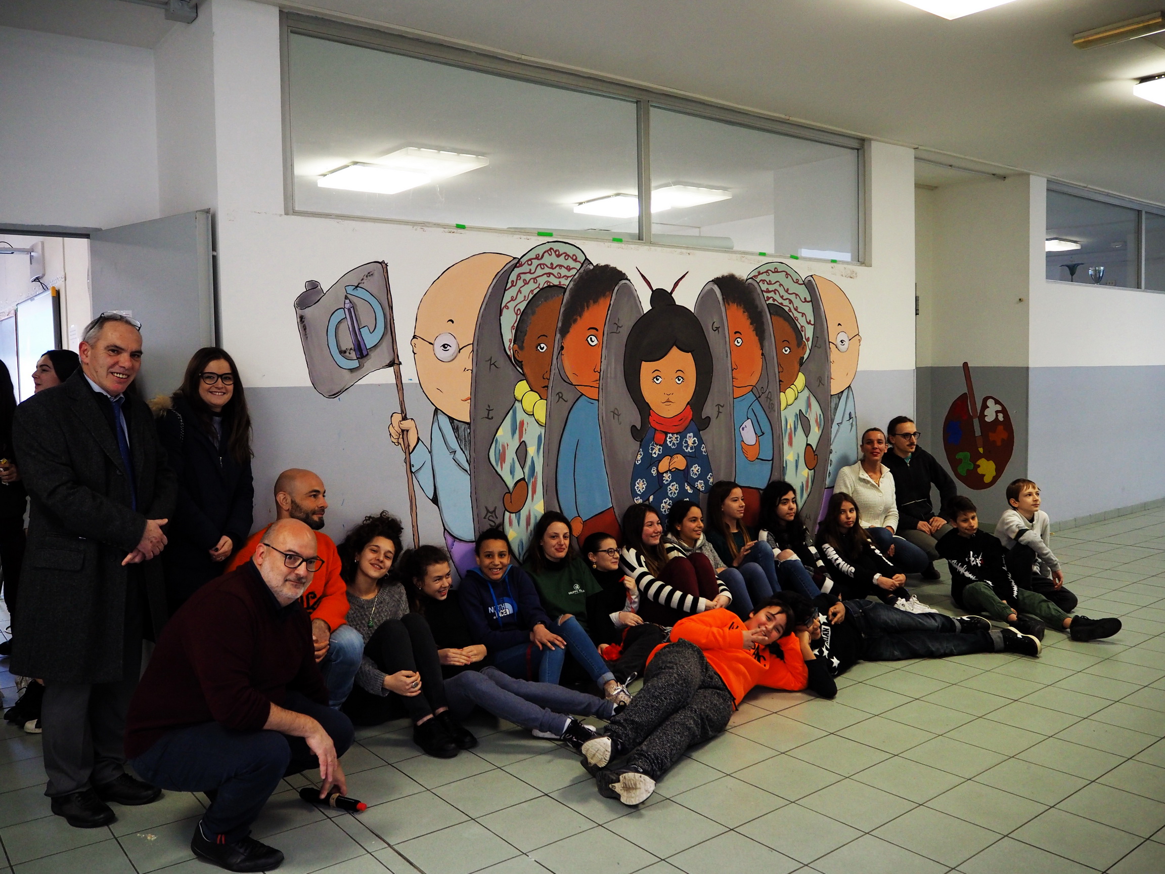 E per imbrattarli bene, non solo nella forma ma anche nella sostanza, l’Istituto ha aderito ad un progetto per la realizzazione di un murale nell’atrio della scuola media “Domenico Galaverna”.