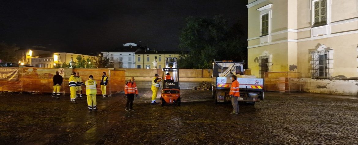 “Mentre monitoriamo l’andamento della piena, i volontari hanno cominciato la predisposizione dei sacchetti di sabbia. Dalle 20 la piazza sarà chiusa precauzionalmente per motivi di sicurezza.”