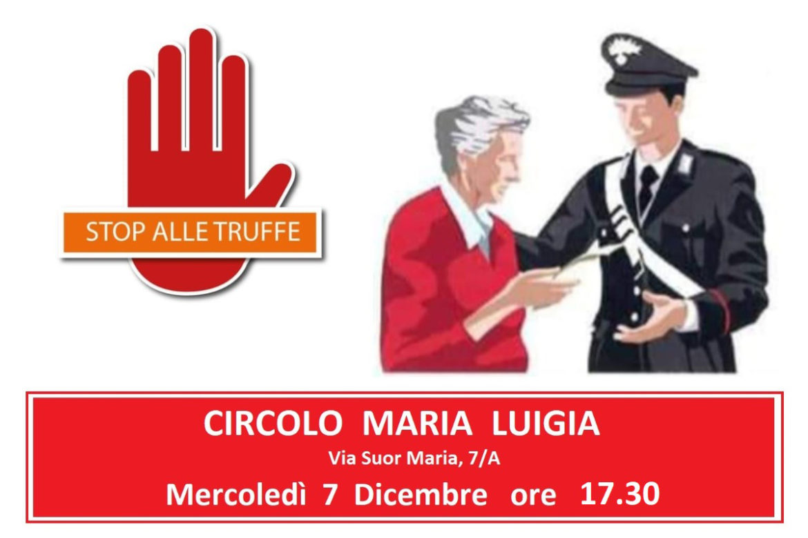Domani a Colorno alle ore 17.30, presso il Circolo Maria Luigia, ci sarà un incontro pubblico di informazione e prevenzione, riguardante il tema delle truffe verso le fasce più deboli della popoazione, in particolare gli anziani.