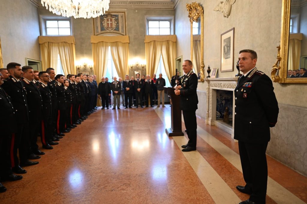 Nella splendida cornice del salone “degli uccelli” del Palazzo Ducale ha poi a consegnato alcuni attestati di merito in favore dei militari in forza al Comando Provinciale di Parma, distintisi in particolari attività di servizio.