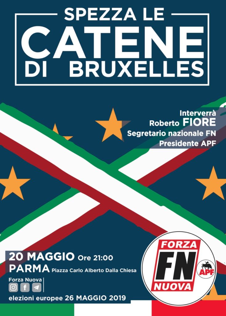 Comizio di Fiore (Forza Nuova) in Piazzale Dalla Chiesa di UG 18 Maggio 2019 18 Maggio 2019 74 A chiusura della campagna elettorale, Forza Nuova terrà un comizio in Piazzale Dalla Chiesa, dove interverrà il Segretario Nazionale di F.N. Roberto Fiore e verranno presentati i candidati alle Europee di FORZA NUOVA APF circoscrizione nord-est.