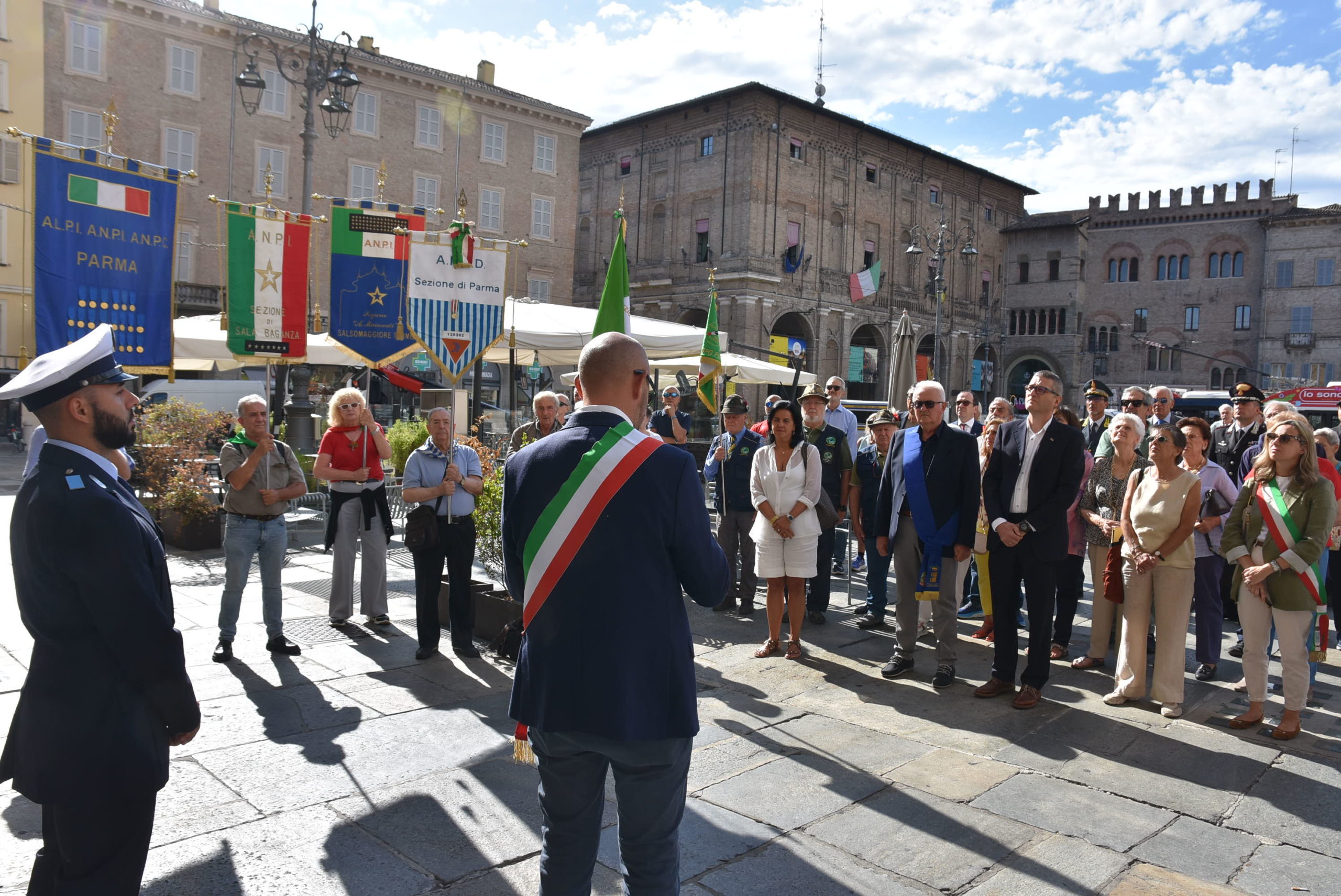 A seguire, nella sala del Consiglio Comunale, sono intervenuti lo stesso Alinovi, Franco Torreggiani per la Provincia di Parma e Nicola Maestri presidente ANPI Provinciale Parma. L’orazione ufficiale è avvenuta a cura di Domenico Vitale direttore di Isrec Parma.