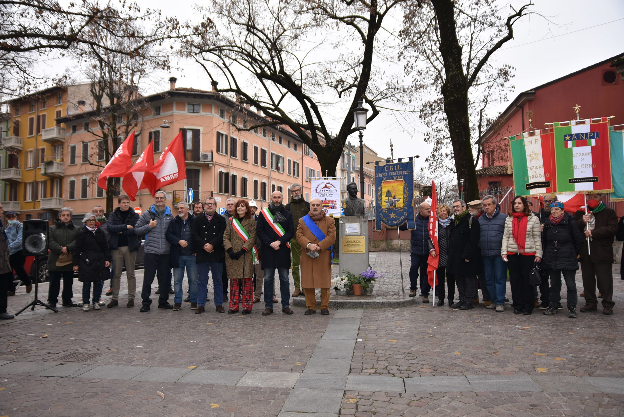 “Ricordiamo come ogni anno l’importante figura di Picelli, quest’anno anche nel centenario delle Barricate e dell’ascesa del fascismo con la Marcia su Roma” ha ricordato Rizzi “Lo sciopero legalitario che in altre parti d’Italia non funzionò, a Parma invece riuscì, perchè una figura come Picelli aveva lavorato per creare unità tra le organizzazioni, i lavoratori, le loro famiglie e gli abitanti dell’Oltretorrente e di Borgo del Naviglio. Questa unione scacciò le camicie nere che volevano impedirlo, che volevano impedire l’opposizione verso chi spadroneggiava bastonando e assassinando. Fu anche parlamentare prima con i socialisti poi con il partito comunista di Gramsci, e poi il confino, quindi l’esilio in Unione Sovietica e infine comandante nella Guerra di Spagna. Noi, ancora oggi lo ricordiamo come guida, sia per la sue gesta di combattente, sia per i suoi ideali di difesa dei lavoratori di tutta Europa per i quali è caduto.”