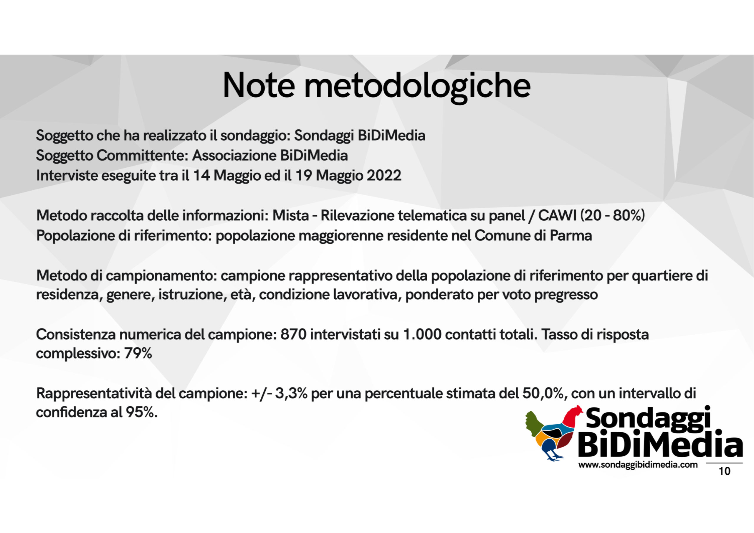 Proseguono le rilevazioni BiDiMedia sulle principali città al voto tra meno di un mese. Dopo Padova e Verona, restiamo al Nord per il sondaggio su Parma: chi sarà il successore di Federico Pizzarotti?
