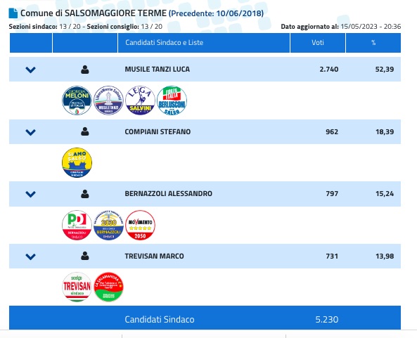 Luca Musile Tanzi vince al primo turno ed è il nuovo sindaco di Salsomaggiore Terme.