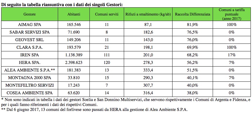 Qualche considerazione, infine, sui territori che ancora non si muovono. Legambiente ha conferito il la menzione negativa “Sacco nero” al Comune di Sogliano Al Rubicone, che arriva a malapena al 15% di raccolta differenziata. Non l’ultimo della regione ma certo quello meno giustificato visto che non si trova in alta montagna ed soprattutto beneficia delle ingenti risorse che gli arrivano da una discarica di grandi dimensioni sul territorio.