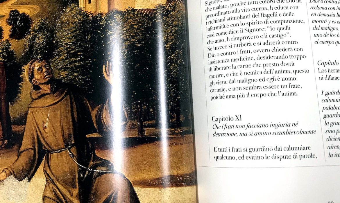 Il prezioso volume dedicato alla Regola e ai Fioretti di San Francesco d’Assisi, edito da Francio Maria Ricci, è stato donato al Comune di San Secondo Parmense da Don Walter Dall’Aglio, parroco del paese fino al 1985, per oltre 25 anni, insegnante di religione nella scuola media locale e patrocinatore del gruppo scout.