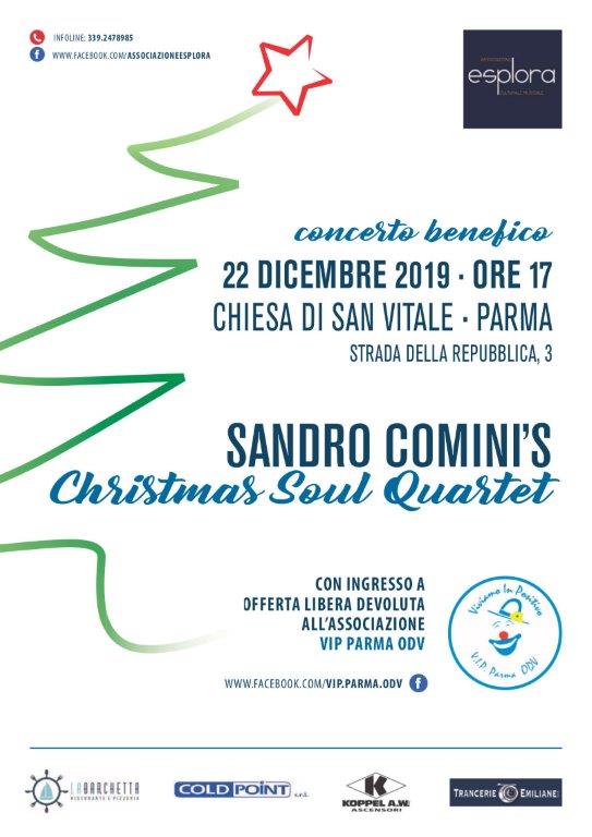 Domenica 22 dicembre alle ore 17 presso la Chiesa San Vitale in strada Repubblica 3 a Parma si terrà il concerto benefico di Natale “Sandro Comini’s – Christmas Soul Quartet”.