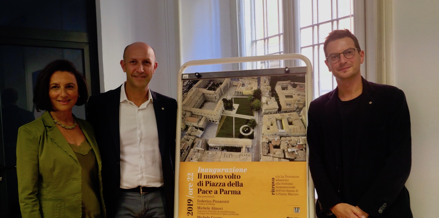 Presentata in conferenza stampa la cerimonia di inaugurazione di piazza della Pace dopo gli interventi di riqualificazione, in programma per sabato 21 settembre alle 22.00 dall’assessore ai Lavori Pubblici Michele Alinovi, dall’assessore alla Cultura Michele Guerra e dalla Direttrice Generale Fondazione Teatro Regio Parma Anna Maria Meo.