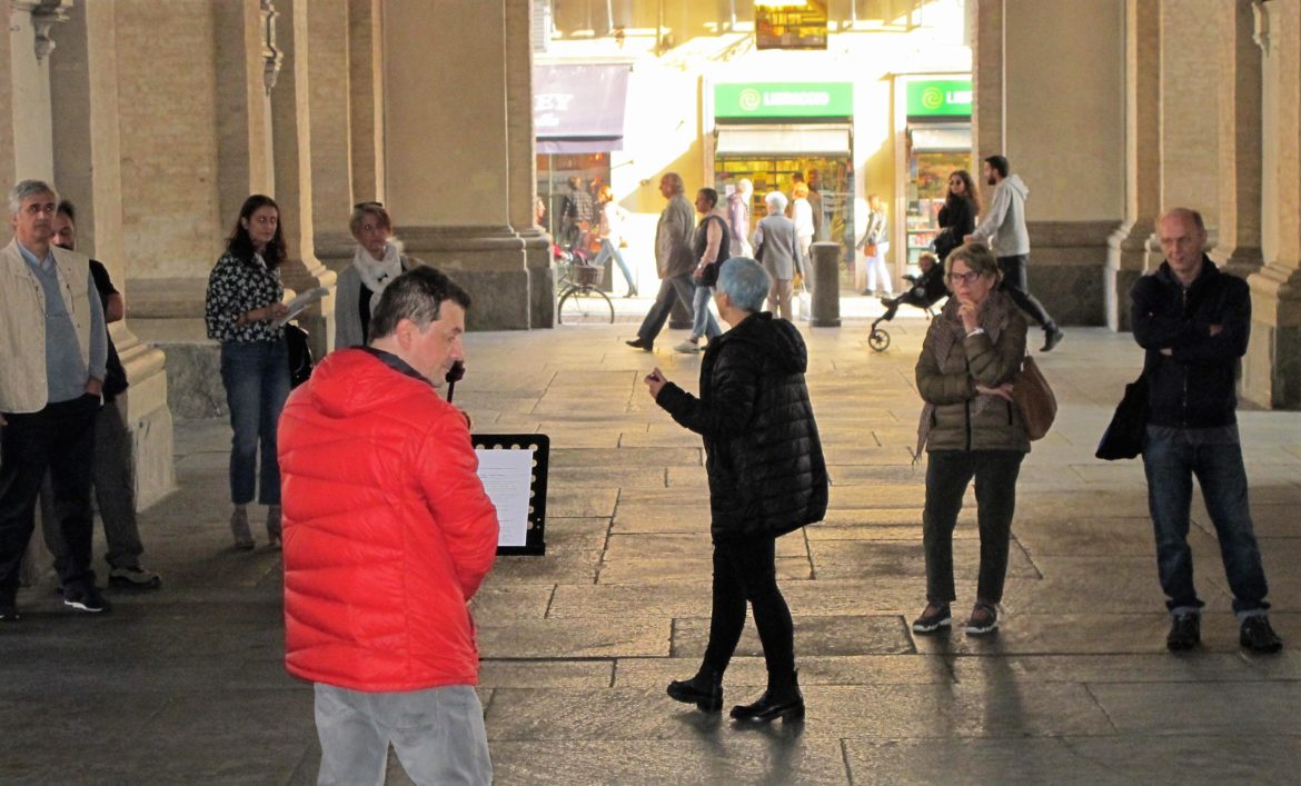 Metti un sabato mattina, passeggiando nel cuore di Parma, che i diritti ti vengano incontro…. Giolli, sotto i Portici del Grano ha proposto ai passanti “Confini” un’azione di teatro in strada concepita con la partecipazione attiva del pubblico.