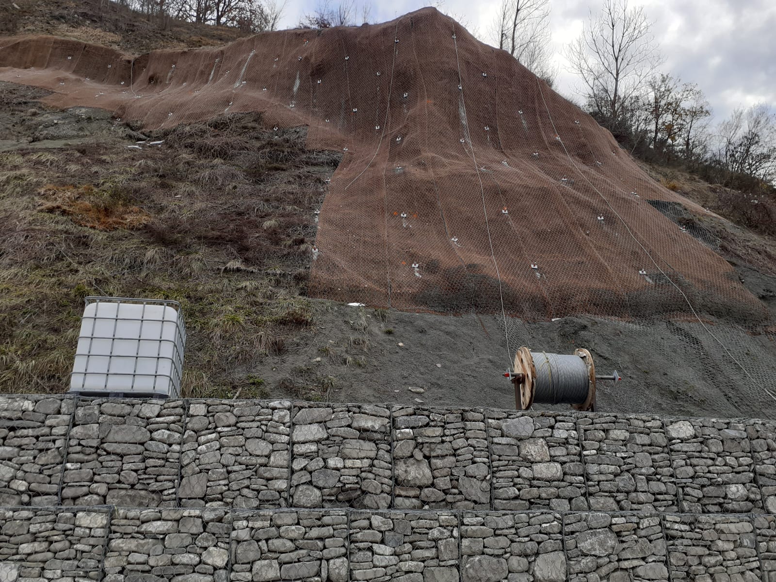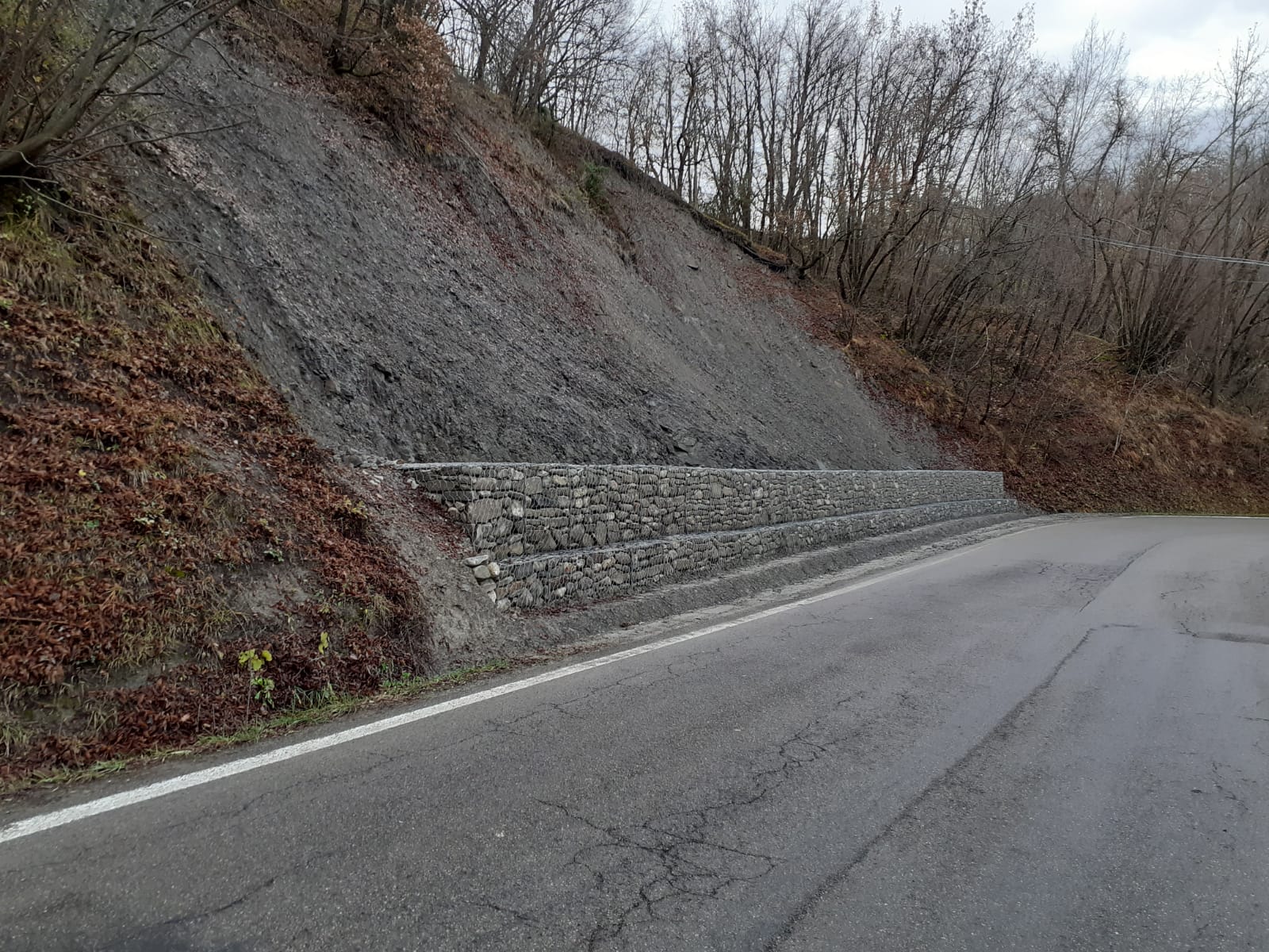 Sono state installate gabbionature con reti per il contenimento della caduta massi lungo la Sp 80 di Scurano in località Ruzzano, comune di Palanzano.