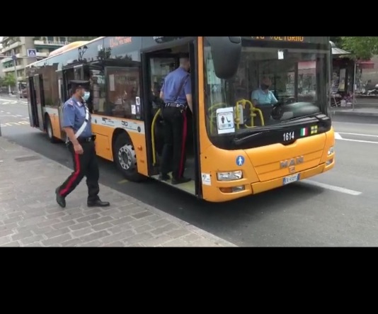 Controlli anti borseggi dei carabinieri negli autobus