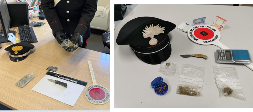 I militari pertanto effettuavano una perquisizione trovando, nella disponibilità di uno dei due ragazzi oltre 5 grammi di hashish e un coltellino a serramanico. Pertanto veniva denunciato all’Autorità Giudiziaria per detenzione illecita di stupefacenti e porto ingiustificato di arma. La ragazza in sua compagnia trovata con una piccola quantità di hashish, veniva segnalata alla Prefettura di Parma e, essendo alla guida del mezzo, le veniva ritirata la patente.