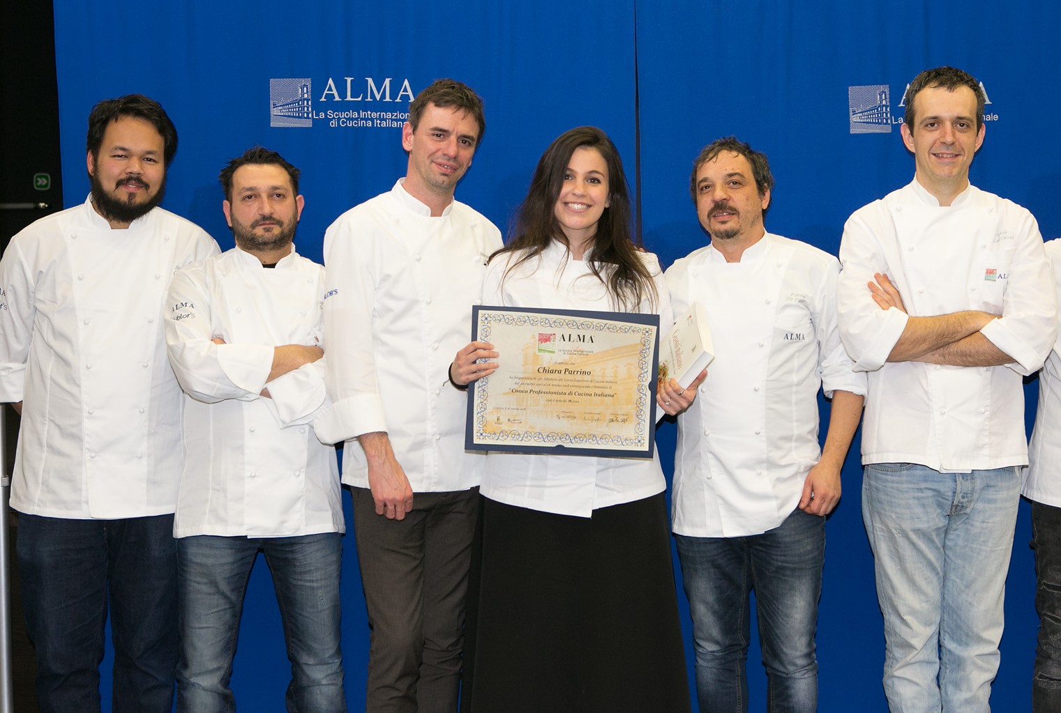 Proveniente dal Corso Tecniche di Base è anche Chiara Parrino, che ha firmato il miglior progetto di tesi. Vent’anni, di Parma, diplomata al Liceo Artistico, la Parrino ha svolto lo stage al Ristorante stellato “Laite”, a Sappada (Belluno), apprendendo i segreti del lavoro in cucina dallo chef Fabrizia Meroi. Proprio in questi giorni, la chef Fabrizia Meroi è stata insignita da Michelin con il premio speciale Chef Donna 2018, tributo al talento femminile per l’eccellenza della cucina italiana.
