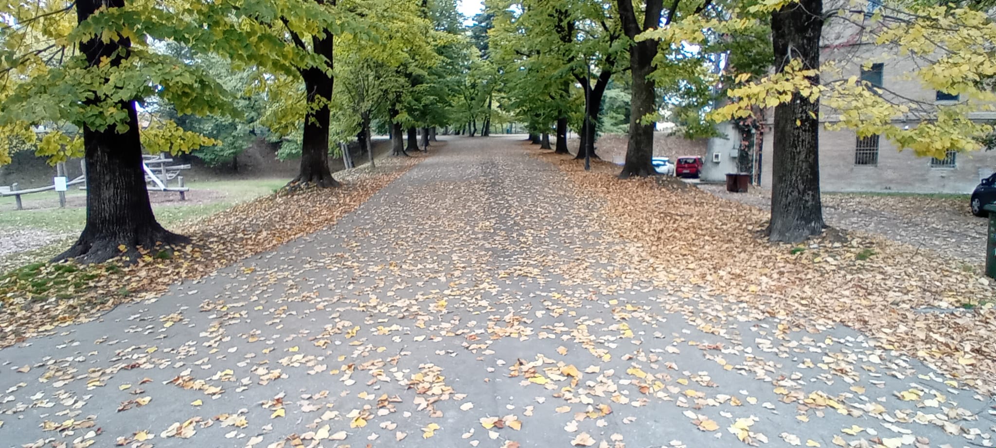 all’interno del parco Cittadella, già da una settimana e anche stamattina, le foglie coprono l’area pedonale e ciclabile. Quando piove, come emerge anche dalle segnalazioni di molti cittadini, tutta l’area si trasforma in una grande pista molto scivolosa: pedoni e ciclisti rischiano ogni giorno di cadere e farsi male. La Cittadella è solo uno dei punti critici, lungo viale Partigiani d’Italia la situazione non è