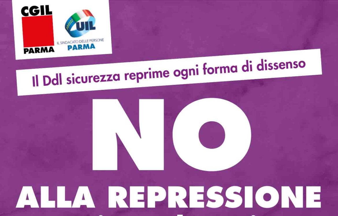Mercoledì 25 settembre, alle ore 11.30, anche a Parma, come in tutte le principali città del Paese, CGIL e UIL scenderanno in presidio davanti alla Prefettura, in strada della Repubblica, 39, per protestare contro il Ddl sicurezza, già approvato alla Camera e che ora passerà in Senato.