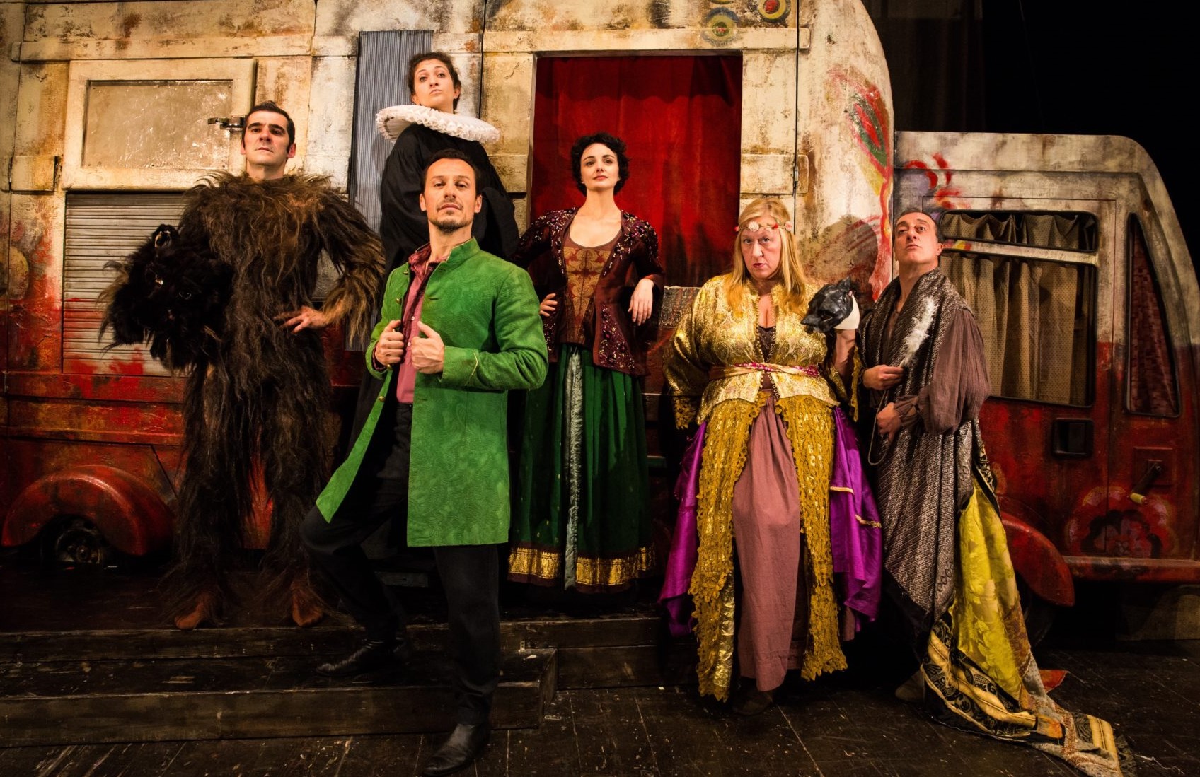 Sulla scena è parcheggiato un carro-furgone, “casa” e teatro viaggiante della compagnia che si appresta a mettere in scena l’opera. La modularità del carro, favorirà la messa in scena di sette novelle del Decamerone, permettendo di volta in volta la creazione degli spazi e delle suggestioni necessarie alle storie che si vanno a narrare. Una grande passione anima la compagnia, ma non altrettanto grandi sono le loro risorse materiali, si alterneranno quindi in un susseguirsi di ruoli e vicende, forti della loro arte teatrale.