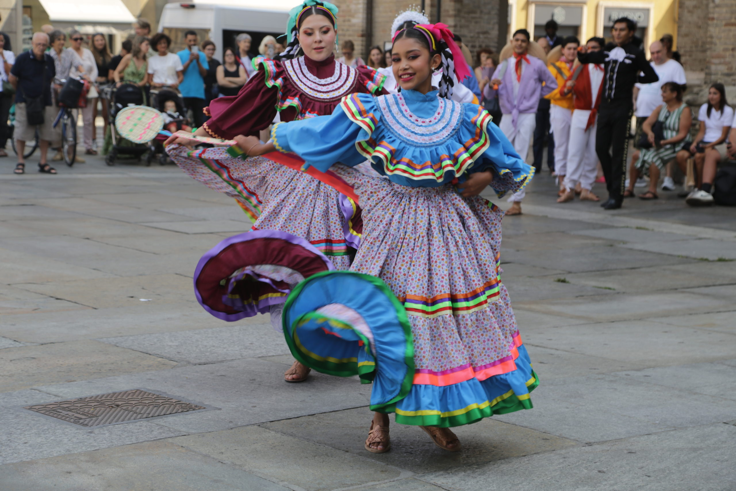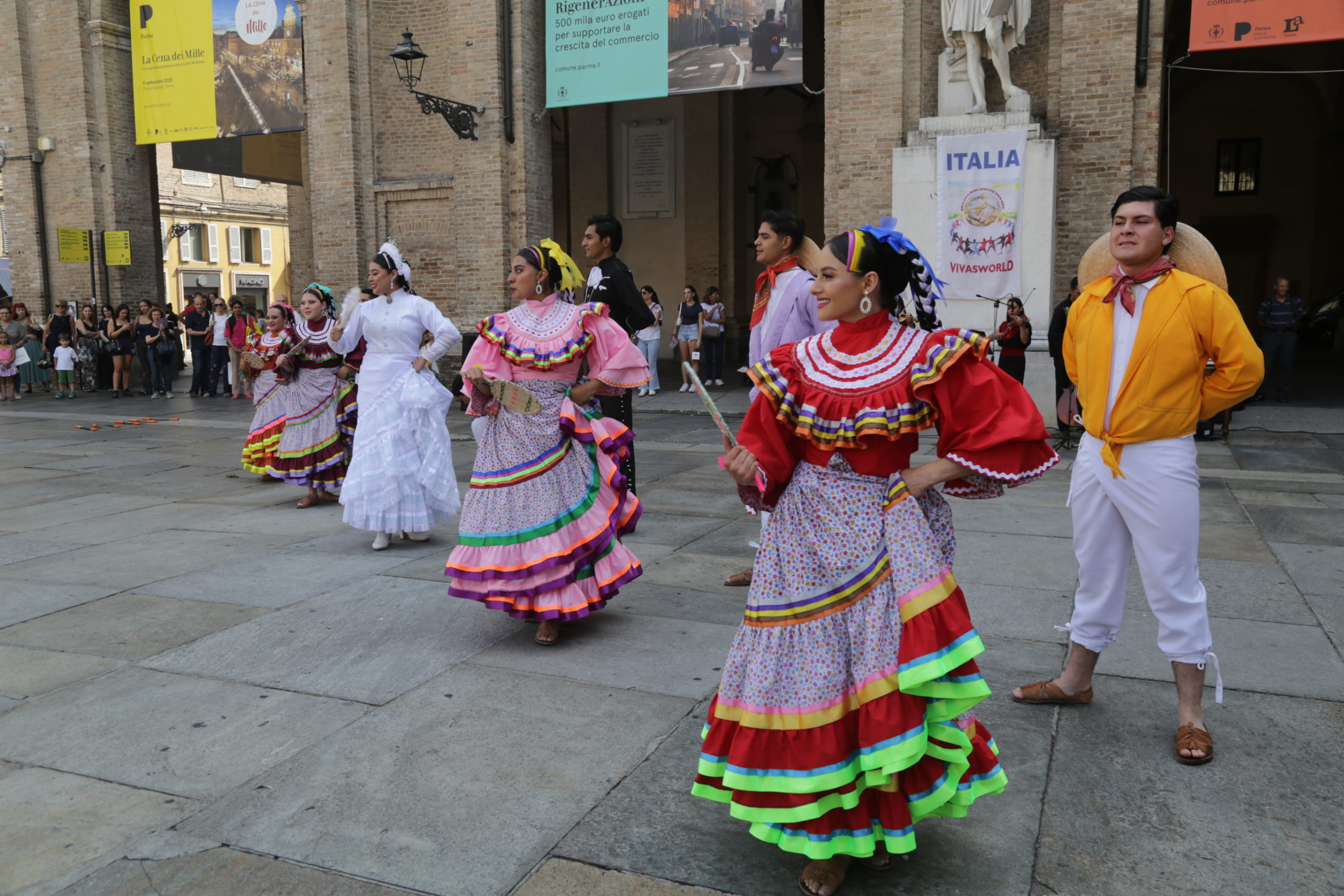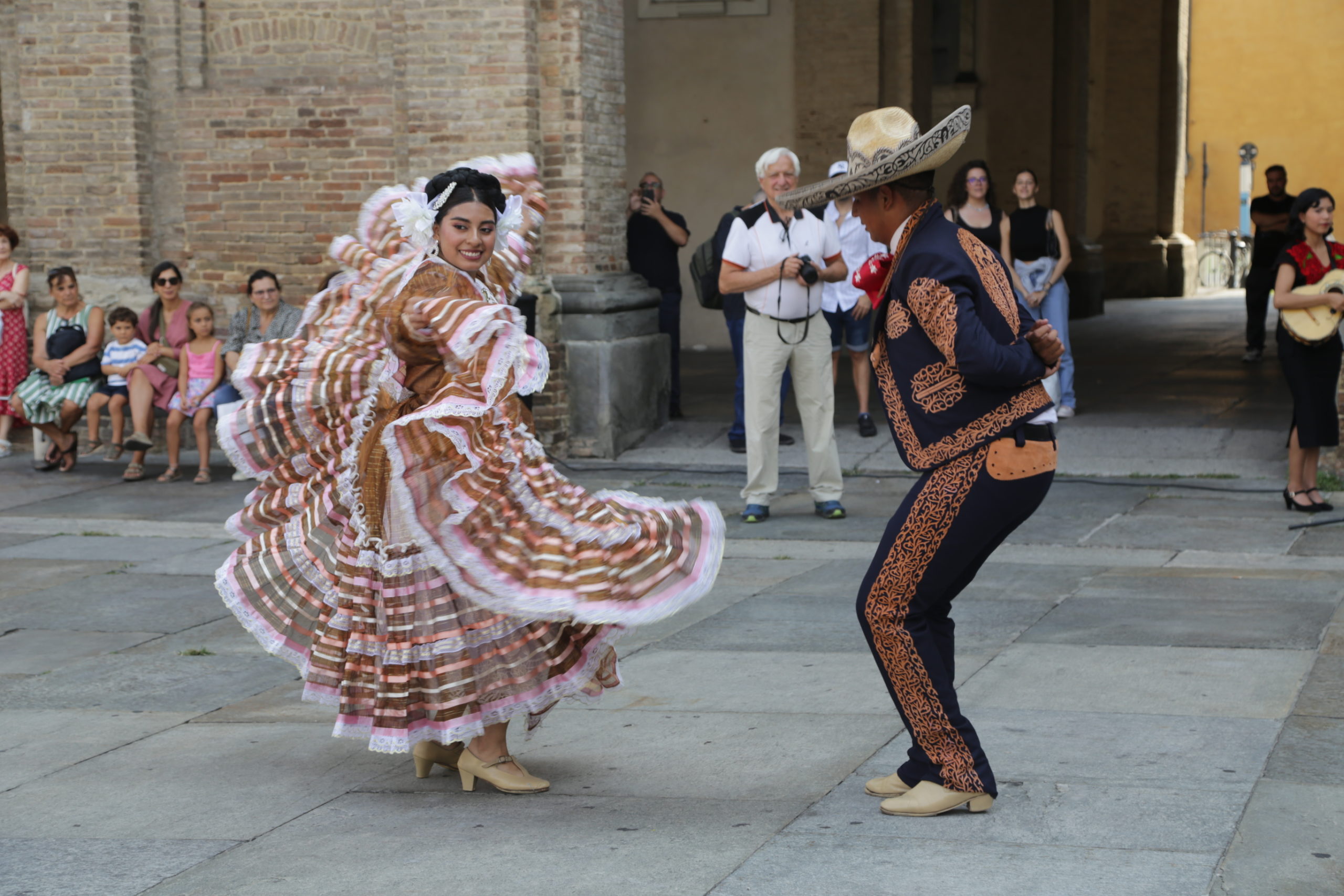 Il Presidente del Consiglio Comunale Michele Alinovi e la Consigliera Comunale Victoria Oluboyo hanno ricevuto, questa mattina, in Municipio, i danzatori e le danzatrici del Ballet Folclorico Plateros, provenienti dal Messico. I ragazzi e le ragazze si trovano in Italia per Festival Internazionale dei Giovani e, dopo il saluto nella Sala del Consiglio Comunale, si sono esibiti in piazza Garibaldi nei loro balli tradizionali.