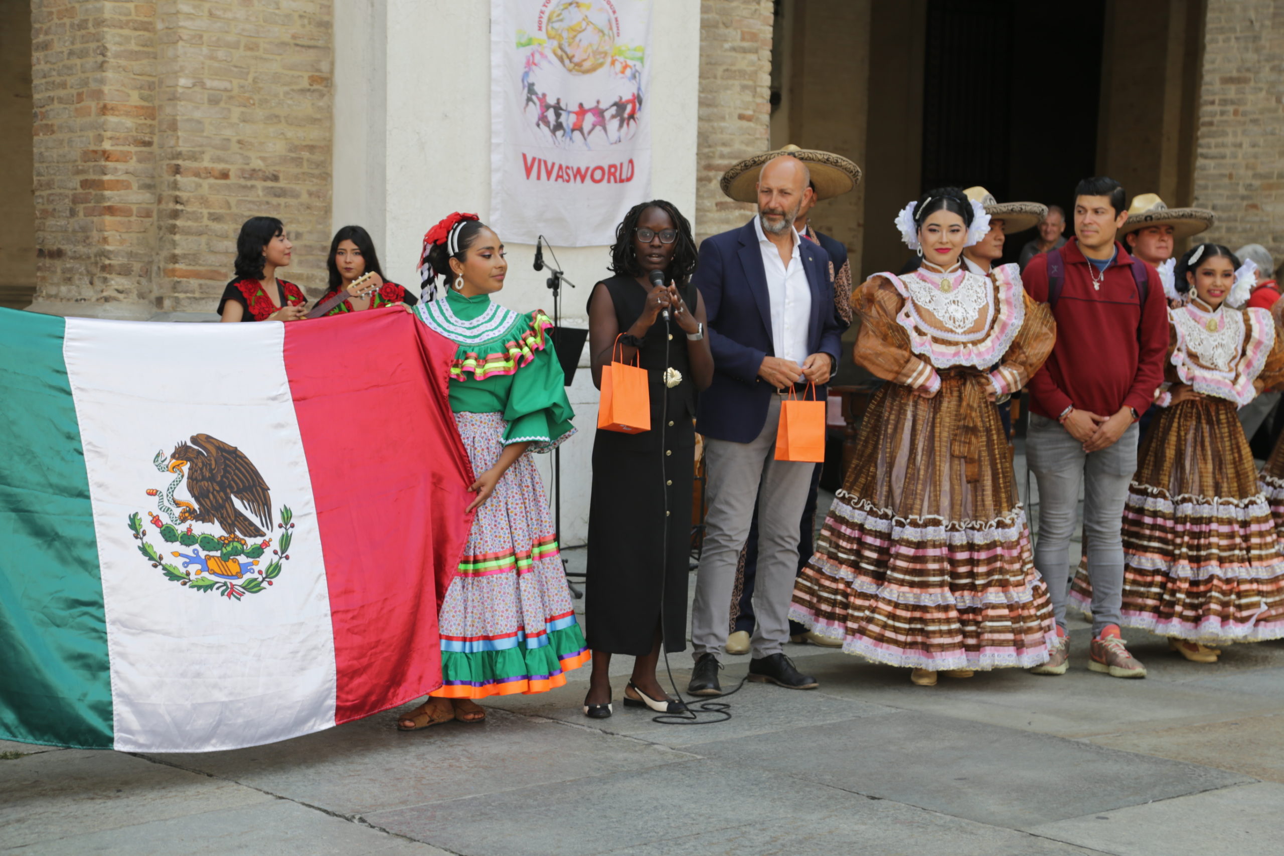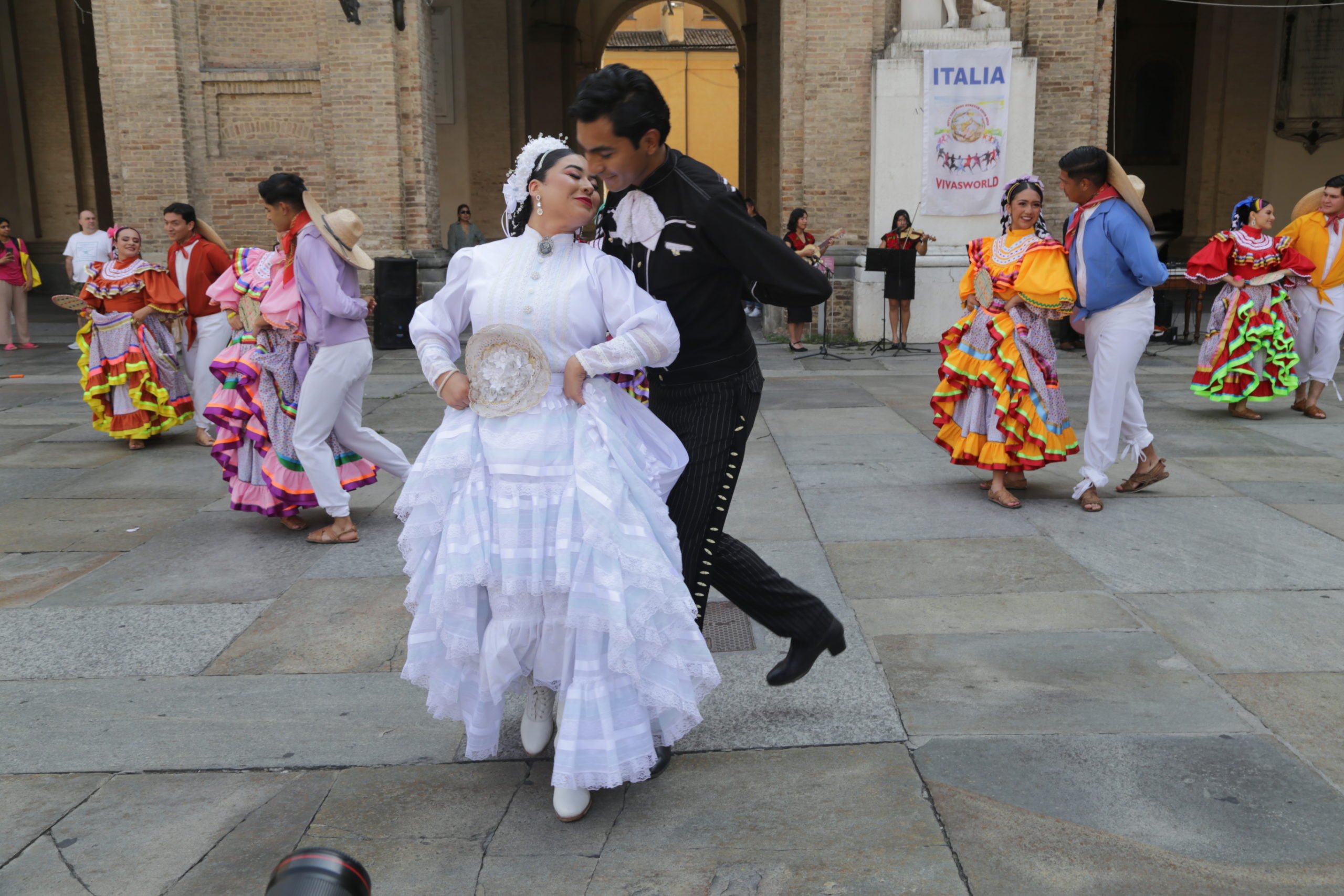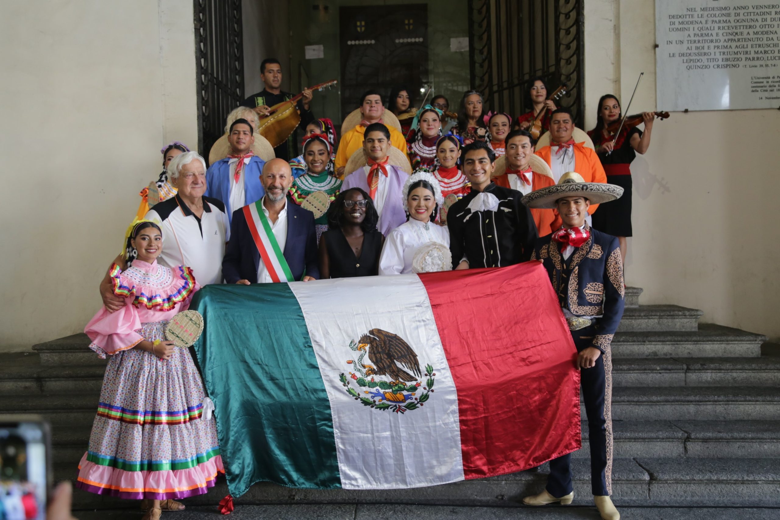 Il Presidente del Consiglio Comunale Michele Alinovi e la Consigliera Comunale Victoria Oluboyo hanno ricevuto, questa mattina, in Municipio, i danzatori e le danzatrici del Ballet Folclorico Plateros, provenienti dal Messico. I ragazzi e le ragazze si trovano in Italia per Festival Internazionale dei Giovani e, dopo il saluto nella Sala del Consiglio Comunale, si sono esibiti in piazza Garibaldi nei loro balli tradizionali.