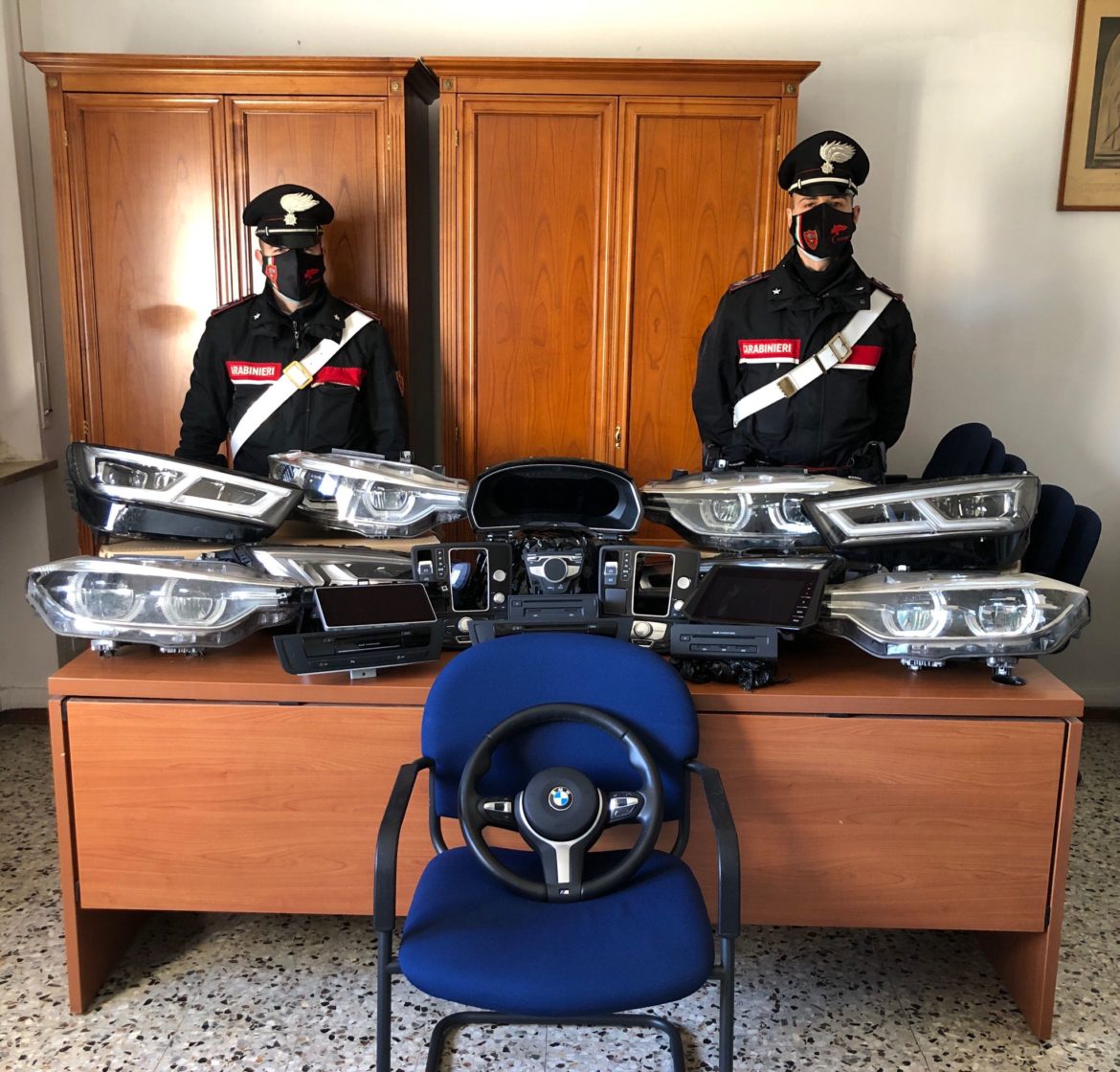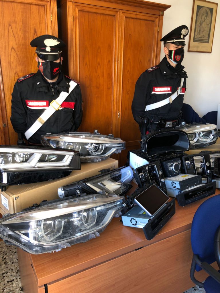 Mentre i militari, si avvicinavano al mezzo, da dietro a tutta velocità si allontanava a fari spenti una vettura di grossa cilindrata. Dopo aver chiesto rinforzo alla Centrale Operativa che invia sul posto un altra pattuglia, si è proceduto al controllo dell’autobus. All’interno vi erano 18 passeggeri più i due autisti che in quel momento stavano caricando le borse. Verificato che tutti erano in regola con i documenti si è ispezionato il vano di carico. Dopo aver suddiviso i vari bagagli e accertato che appartenessero ai viaggiatori, i militari in uno scomparto occultato alla vista hanno scoperto 13 borse in tela di grandi dimensioni, le stesse che poca prima i due stavano caricando. Scaricate dal mezzo ed aperte all’interno sono stati rinvenuti diversi pezzi di ricambio di auto di lusso di varie marche di elevato valore commerciale (fari, plance, volanti, display e cruscotti), senza l’indicazione del destinatario, non appartenenti ad alcun passeggero e che entrambi gli uomini non sapevano indicarne la provenienza. Tutto il materiale rinvenuto è stato posto sotto sequestro e i due denunciati per ricettazione.